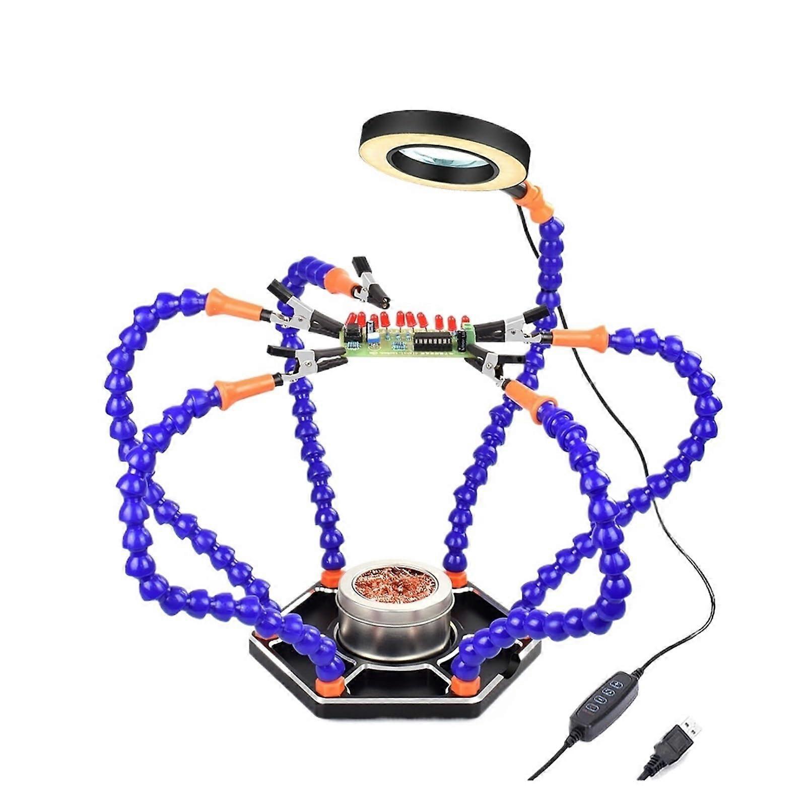 Soldering Helping Hands with 3X LED Magnifying Glass, 360° Clips and Flexible Arms for PCB Work