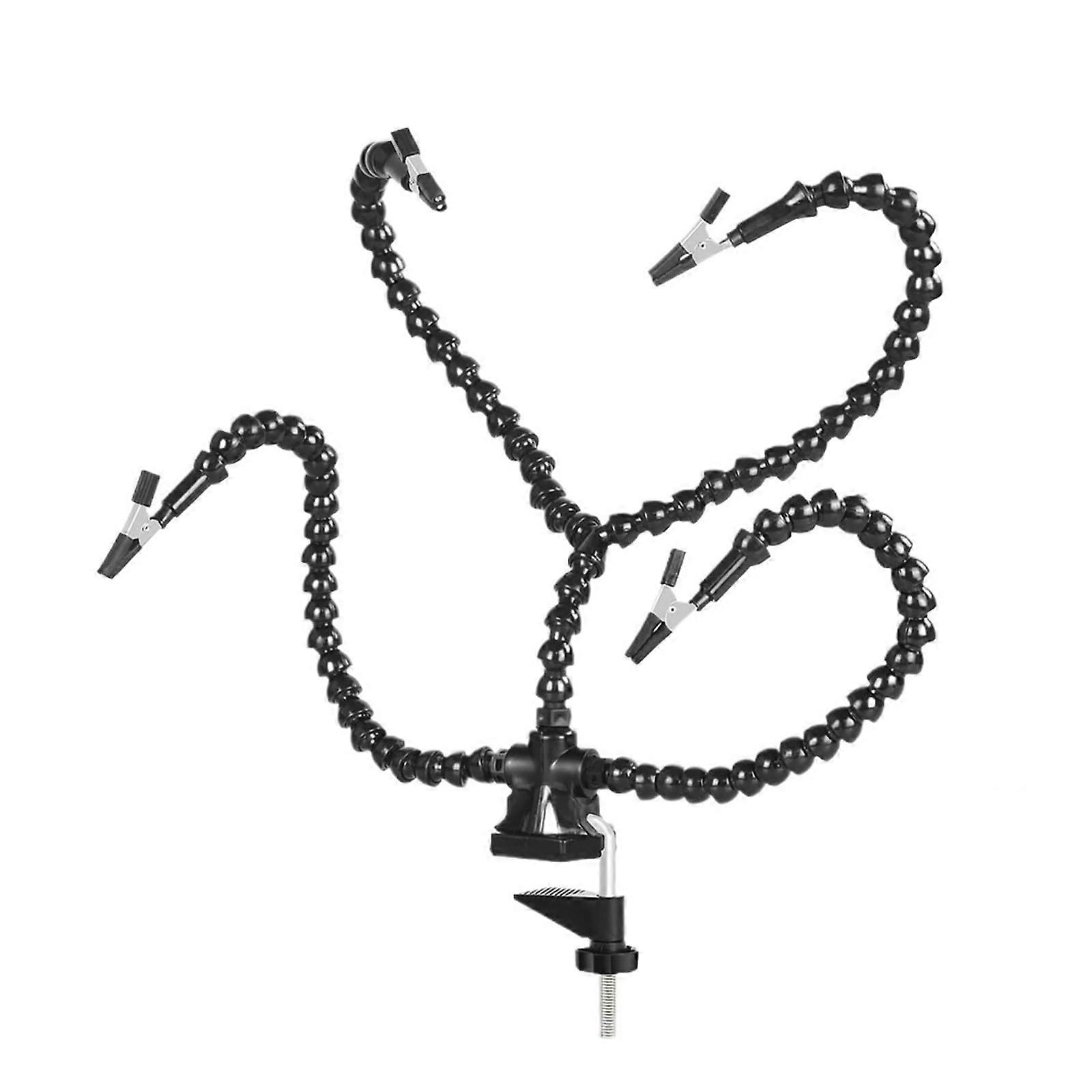 Third Hand Soldering Stand with 4 Flexible Arms, 360° Rotating Clips, LED Light and Magnifier