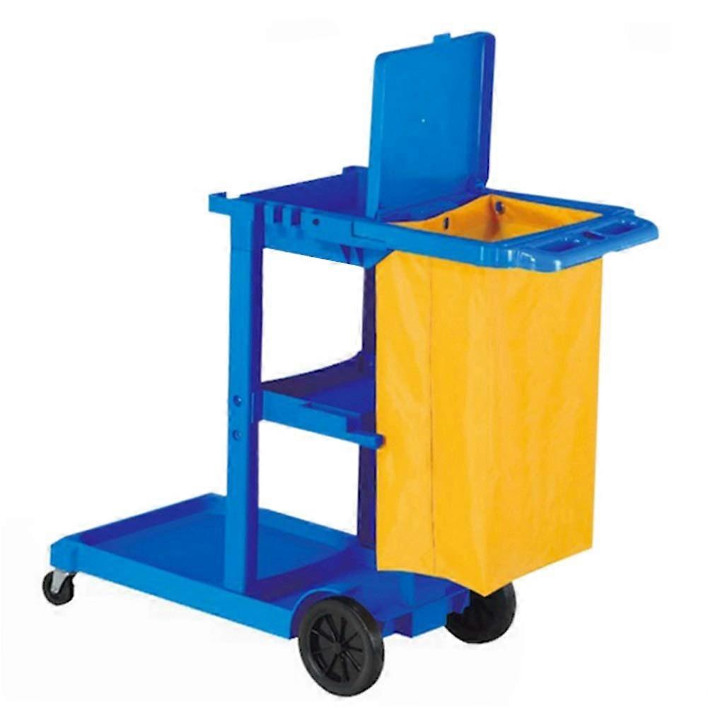 Janitorial Cart with Lid and Large Wheels, ThreeShelf Heavy Duty Housekeeping Trolley for Hotel Cleaning