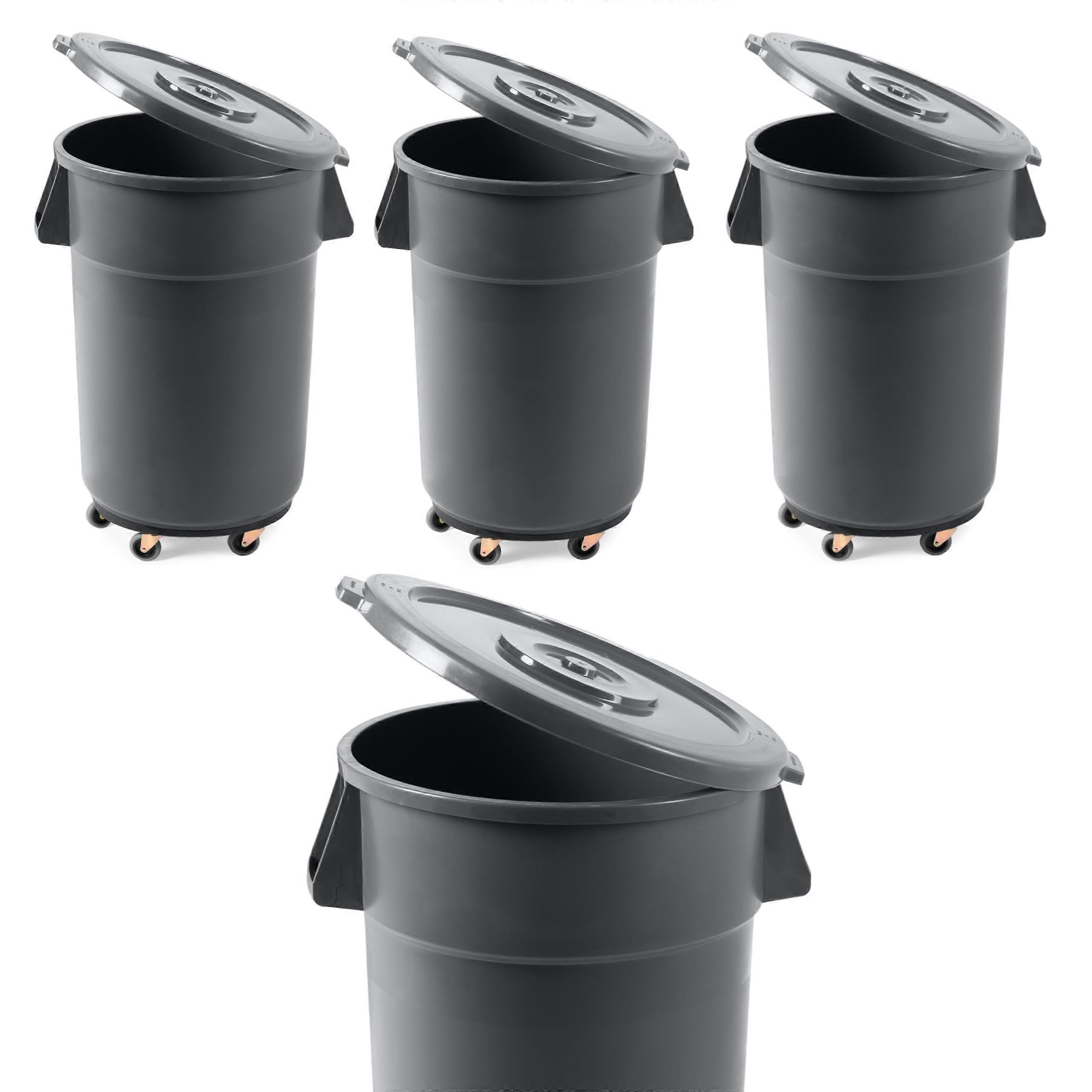 4 Pack 55 Gallon Commercial Trash Can with Lid and Dolly, Durable Outdoor Garbage Bin