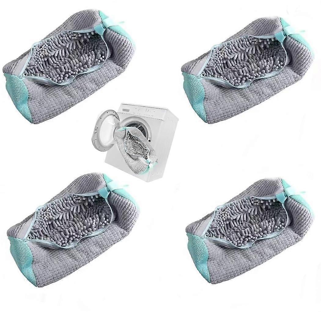 Shoe Laundry Bag with Deep Cleaning Bristles and Zipper Lock, 4 Pcs for Washer and Dryer Grey