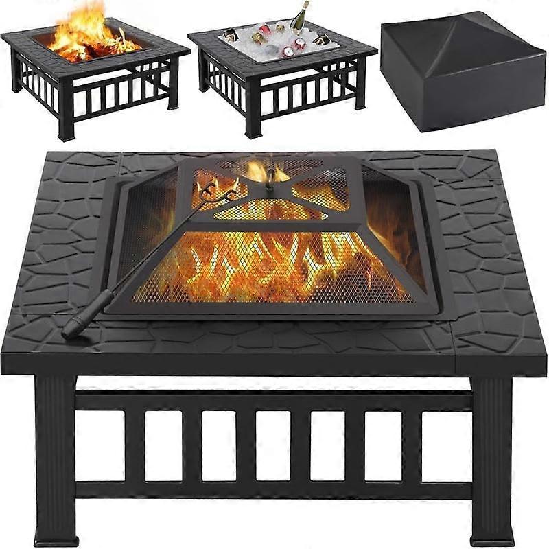 32 Inch Square Fire Pit Table Durable Heat‑Resistant Steel with Spark Guard for Patio Garden Heating