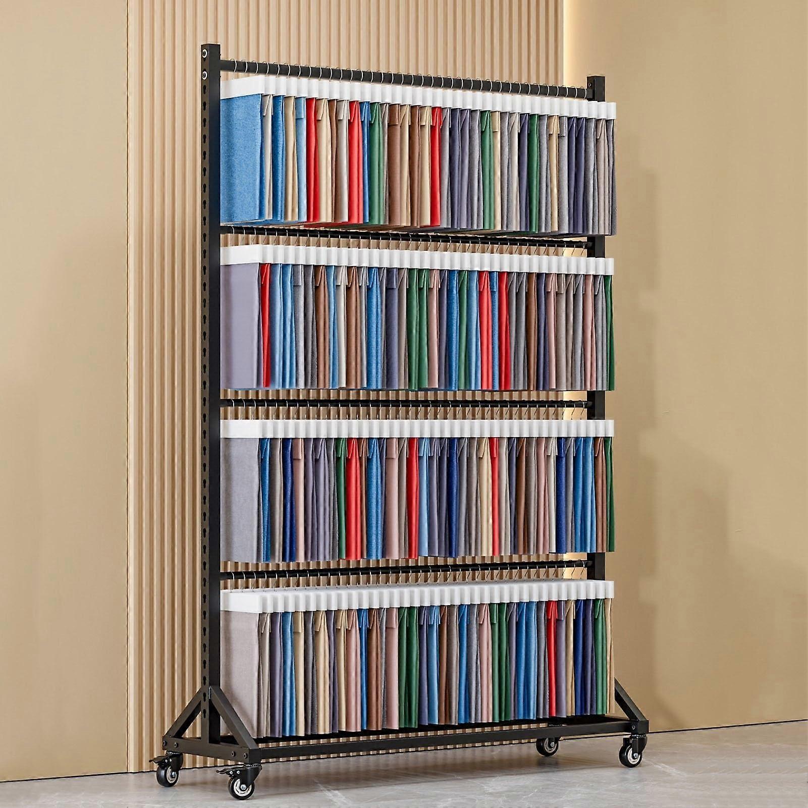 Vinyl Roll Storage Rack Heavy Duty Metal Fabric Organizer with Adjustable Spacing and Lockable Wheels 143x45x205