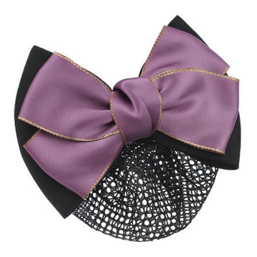 Hair Bun Cover with Bow Barrette Mesh Hair Snood for Work and Dance, Purple