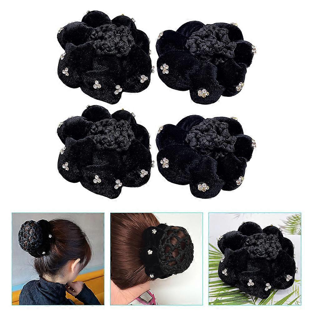Women Hairnets Hair Bun Cover for 4Pcs Black Hair Net Accessories