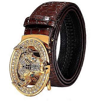 Automatic Buckles Mens Belts Red Burgundy Leather Men Belt Ratchet Tiger Wolf Eagle Bat Gold Black W