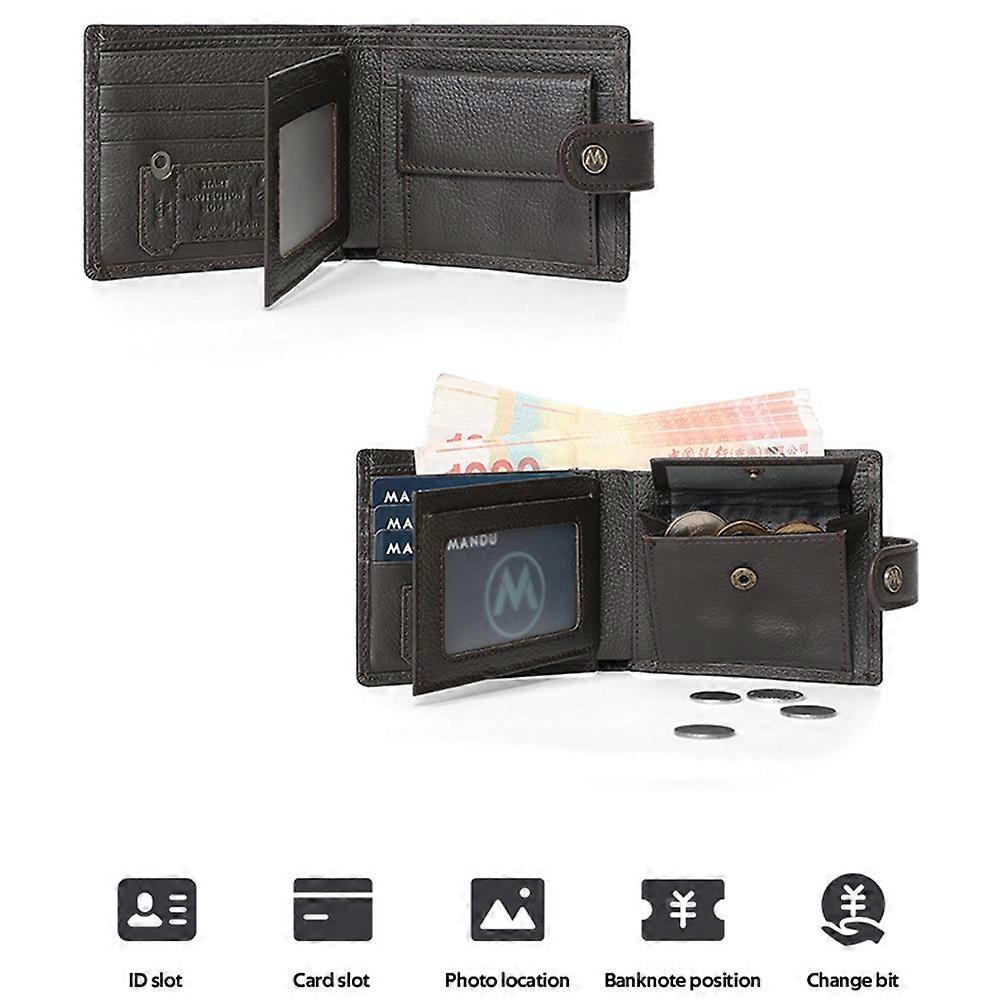 Men's RFID Blocking Wallet Large Capacity Multi Card Holder Genuine Cow Leather Bifold Slim Wall