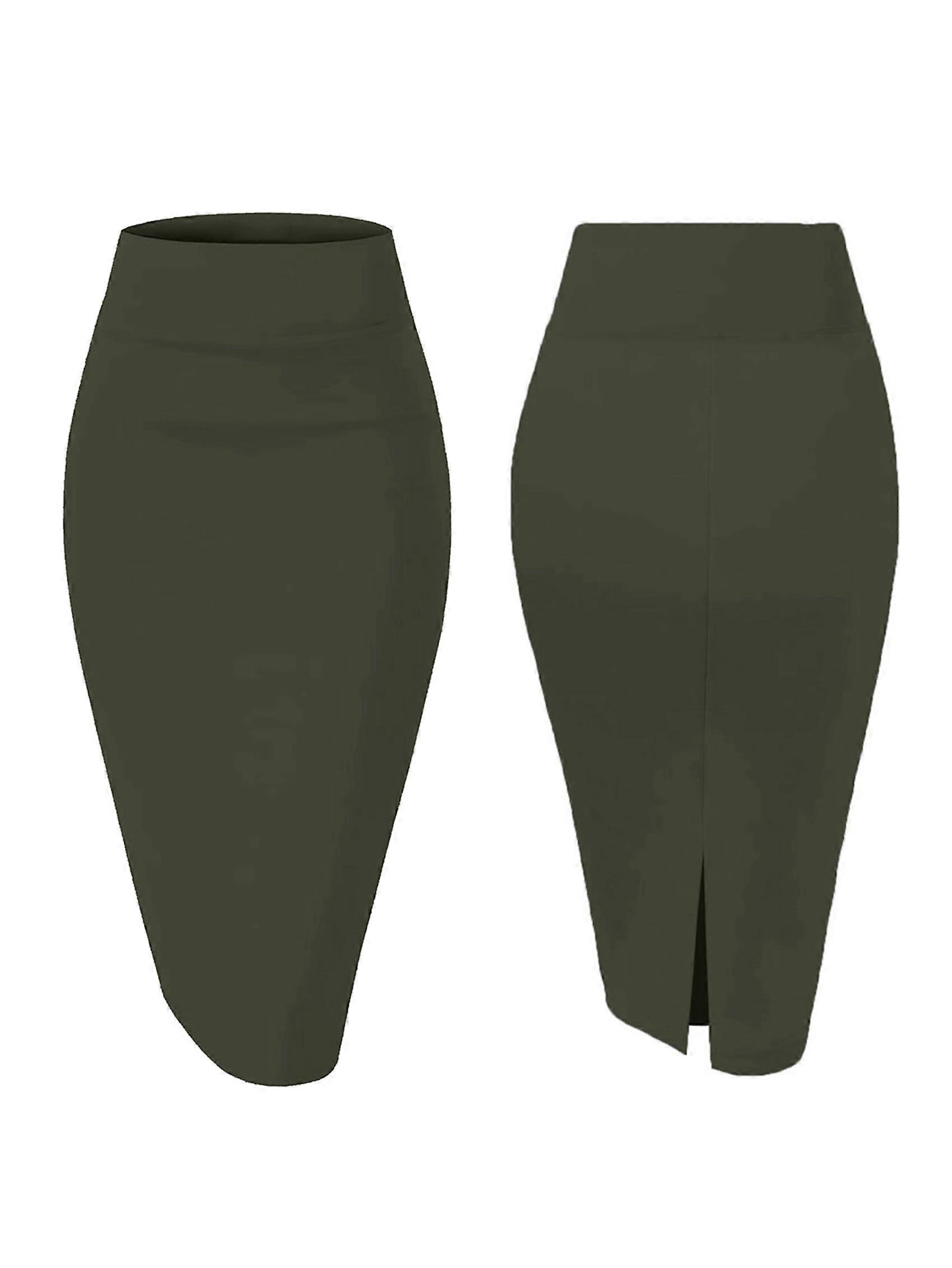 Women'S Premium High Waist Nylon Ponte Stretch Office Pencil Skirt Army Green XXL