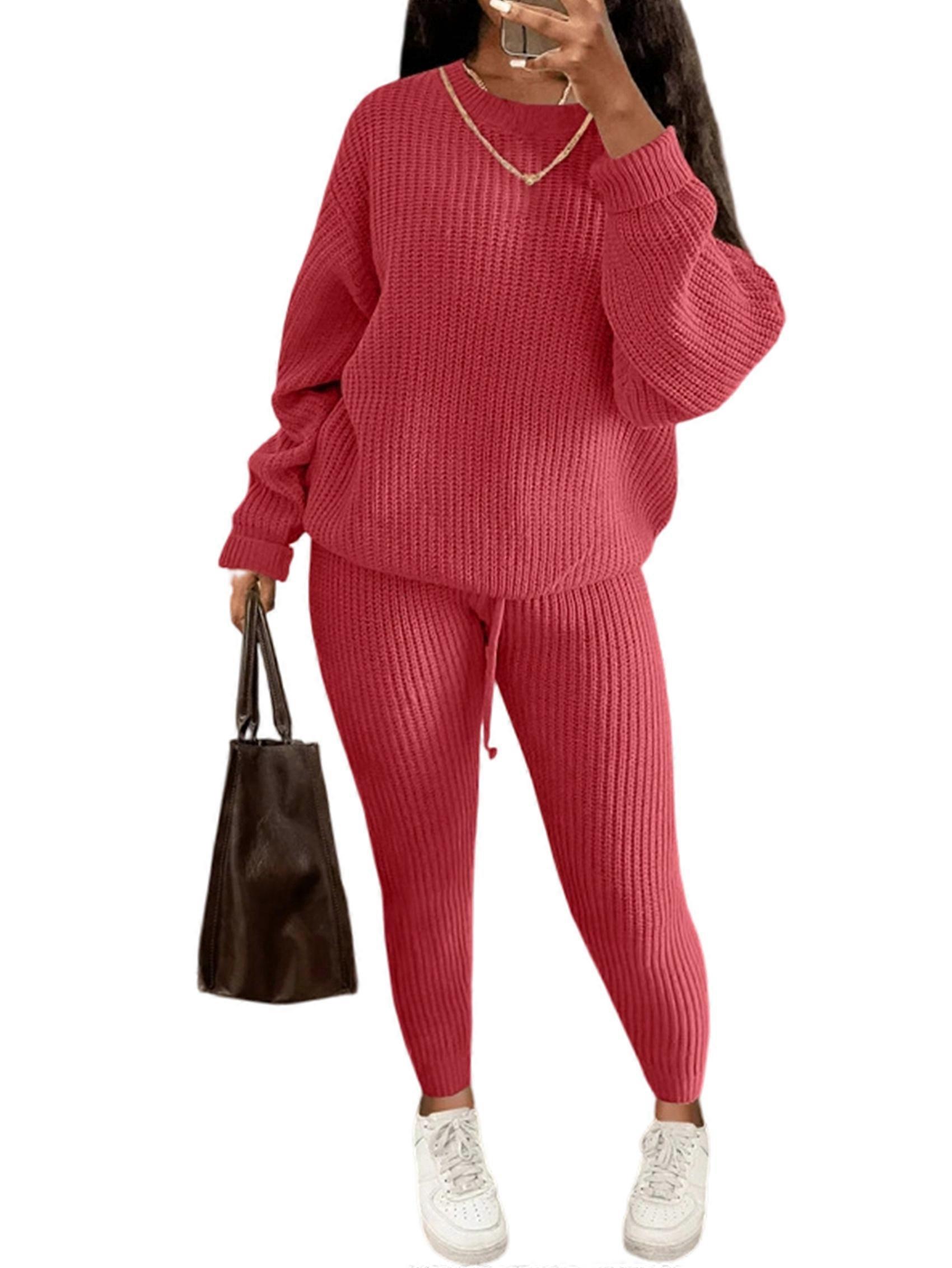 Womens Plus Size Pajama Set 2 Piece Long Sleeve Ribbed Lounge Sleepwear Knitted Set Red XXXL