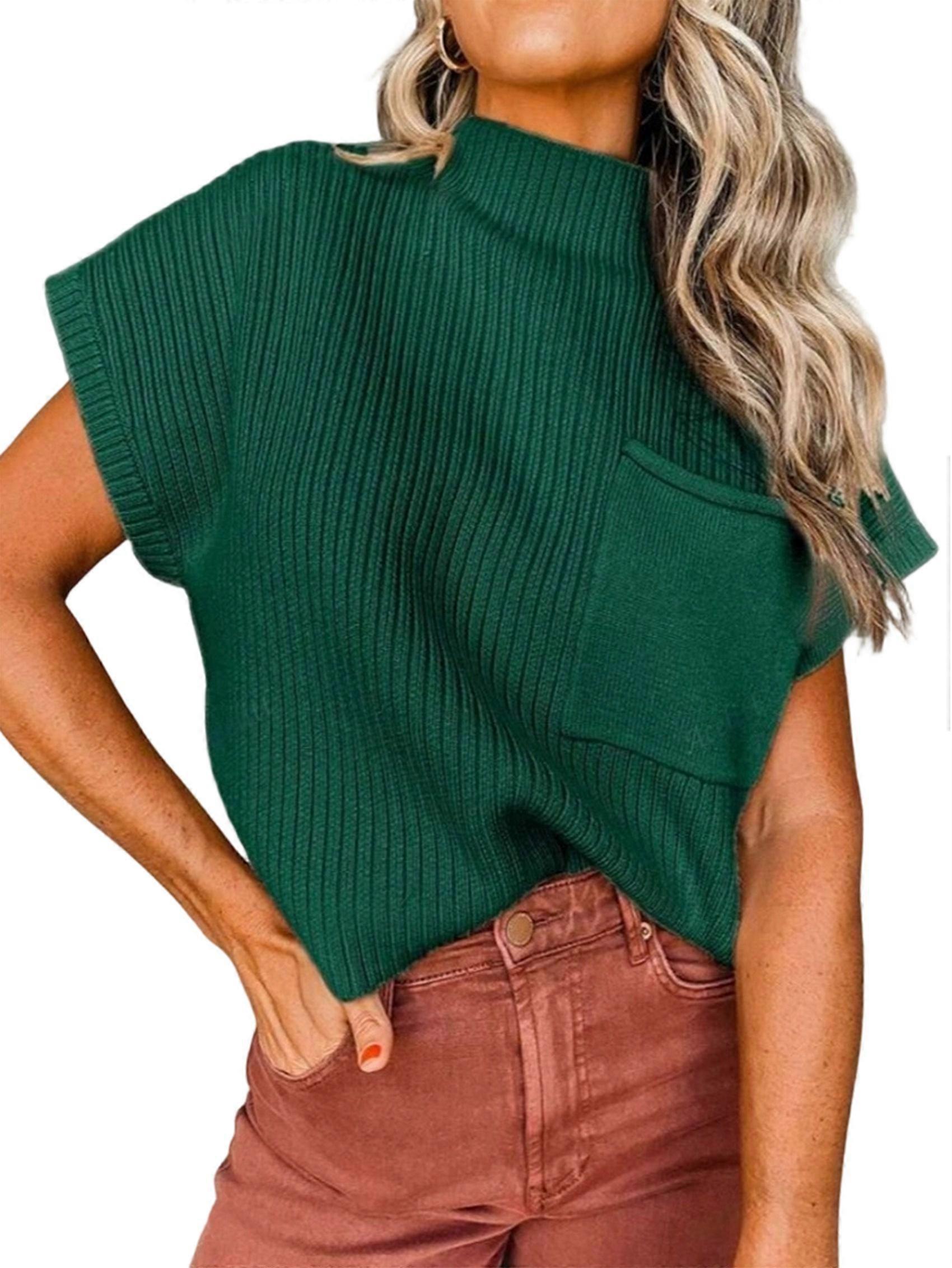 Women'S Solid Sleeveless Vest Mock Neck Cap Sleeve Knitwear Sweater Tops Green S