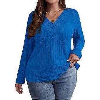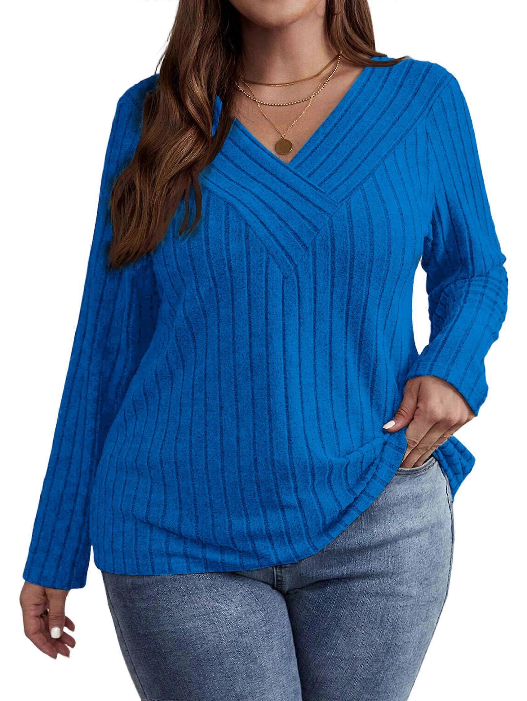 Women'S Plus Size Tops Trendy V Neck Casual Long Sleeve Shirts Knit Sweaters Blue 5XL