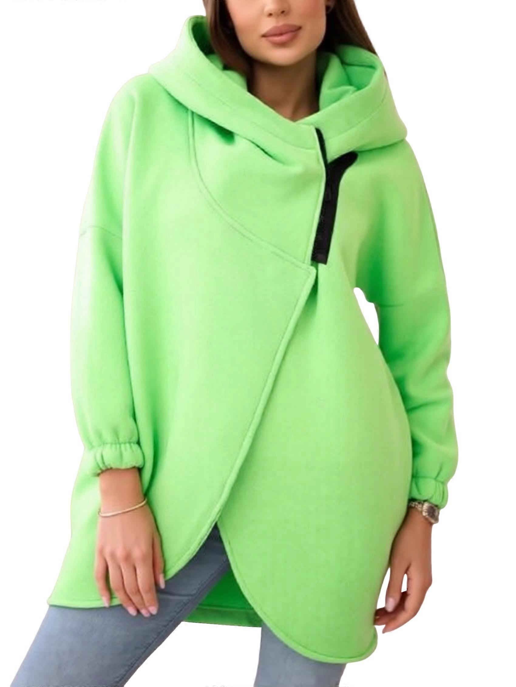 Women'S Plus Size Hooded Fleece Lined Sweatshirt Full Zip Casual Long Sleeve Outdoor Jacket Yellow-Green L