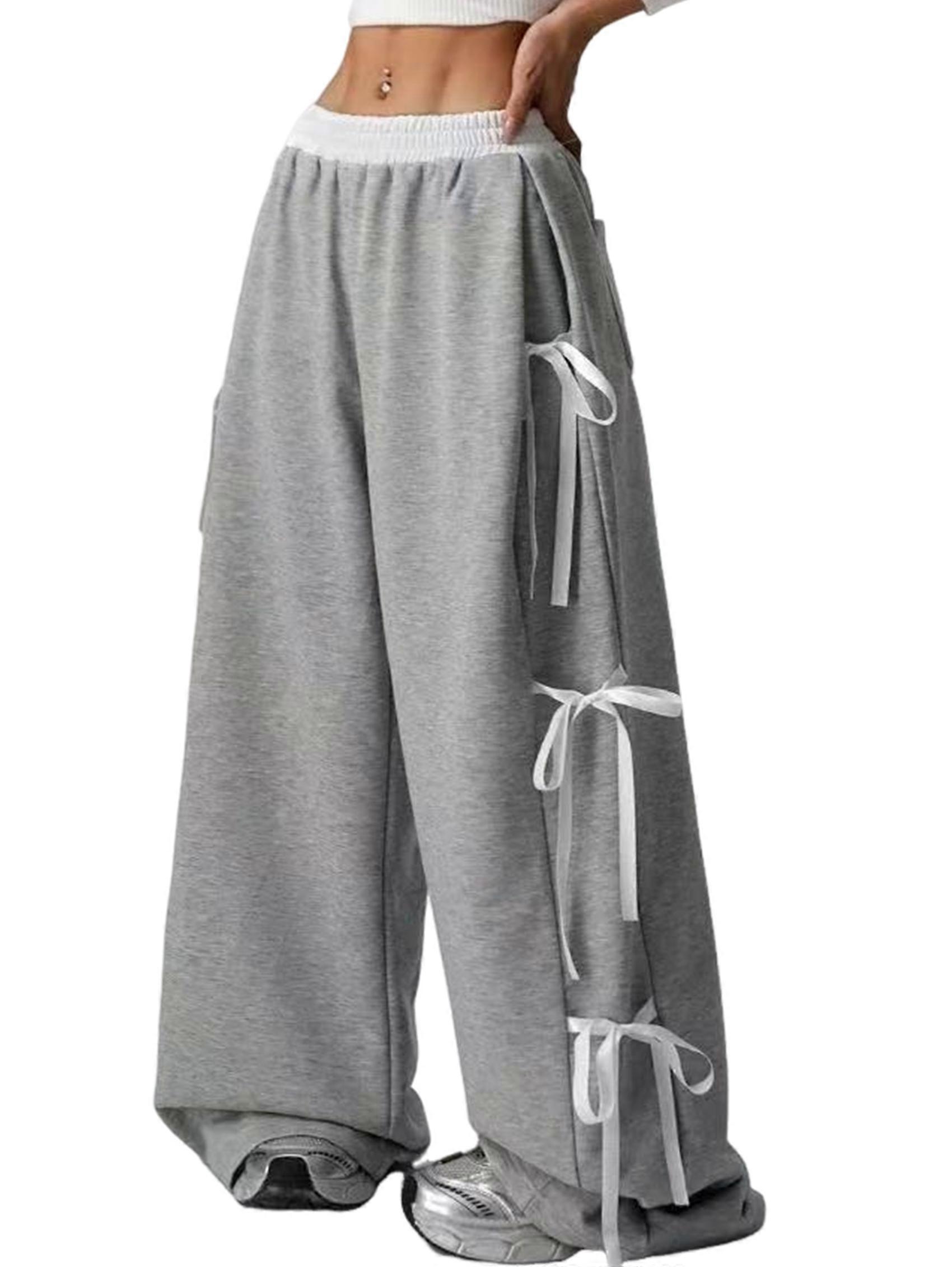Women'S Baggy Sweatpants Elastic Waist Casual Bo-W Wide Leg Pants with Pocket Y2K Going Out Travel Pants Gray M