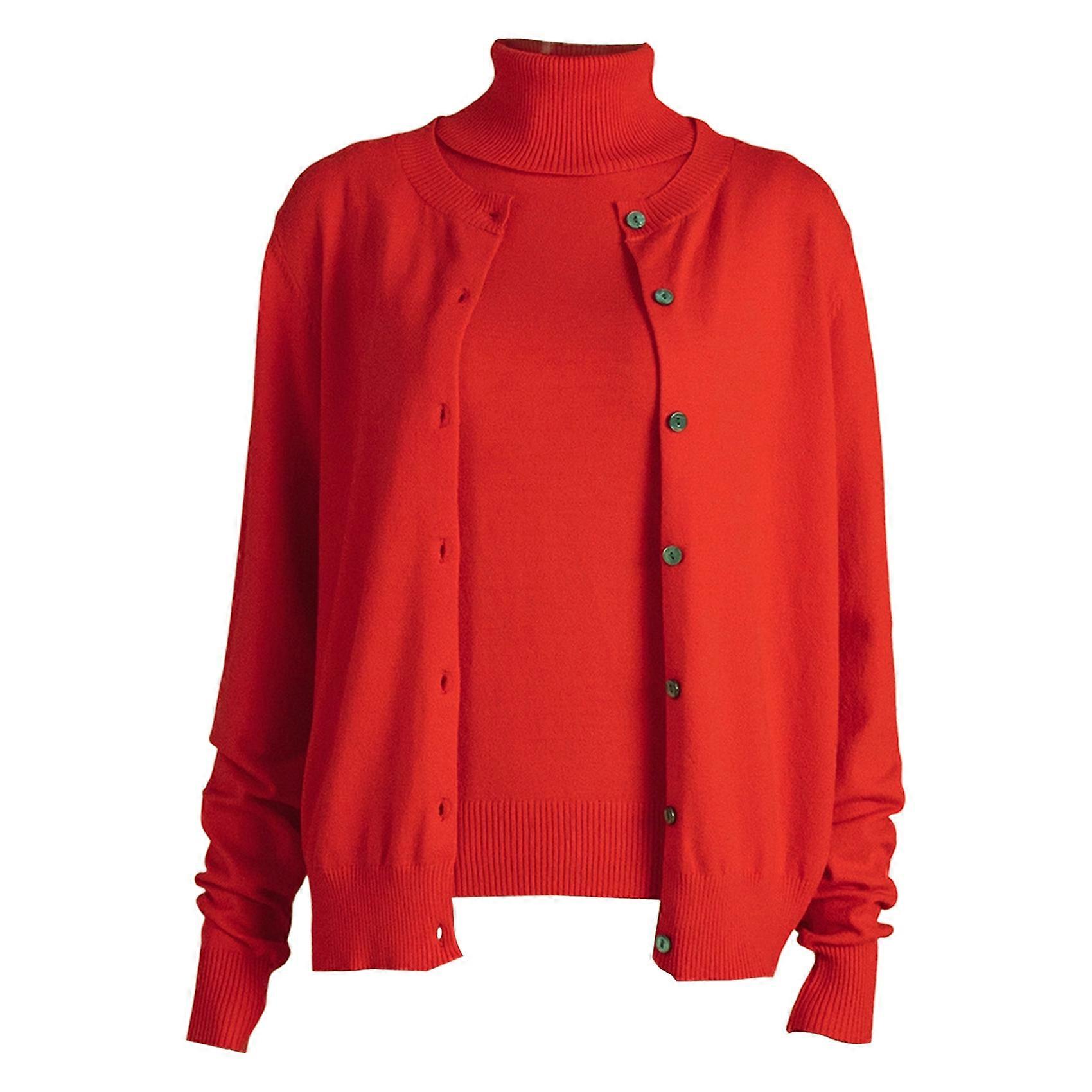 Womens Cardigan Sets 2 Piece Long Sleeve Shrug Top Cropped Cardigan Jackets with Vest Red Set M