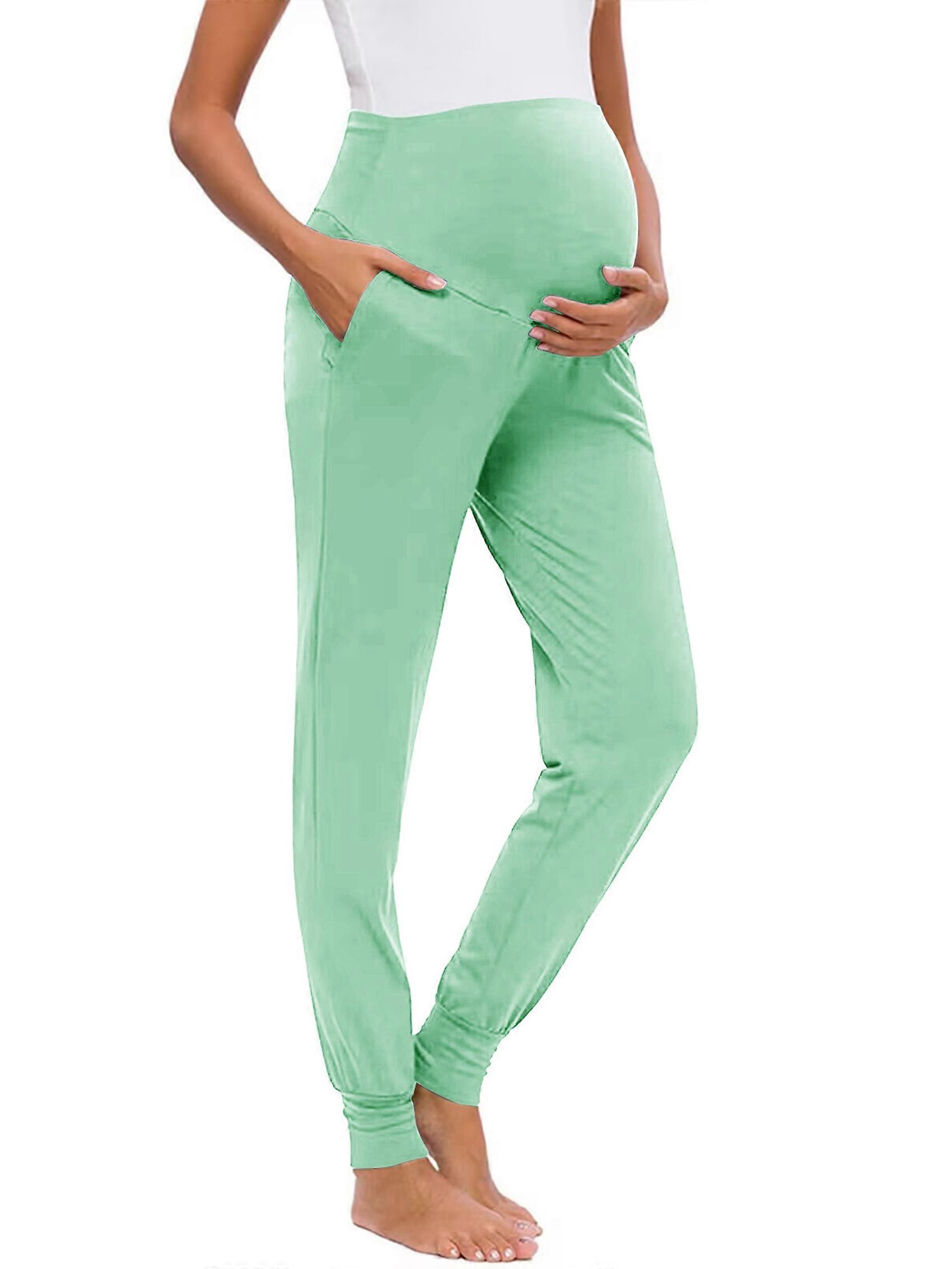 Women'S Maternity Pants over Belly Lounge Pajamas Clothes Pregnancy Must Haves Joggers with Pockets Light Green XL
