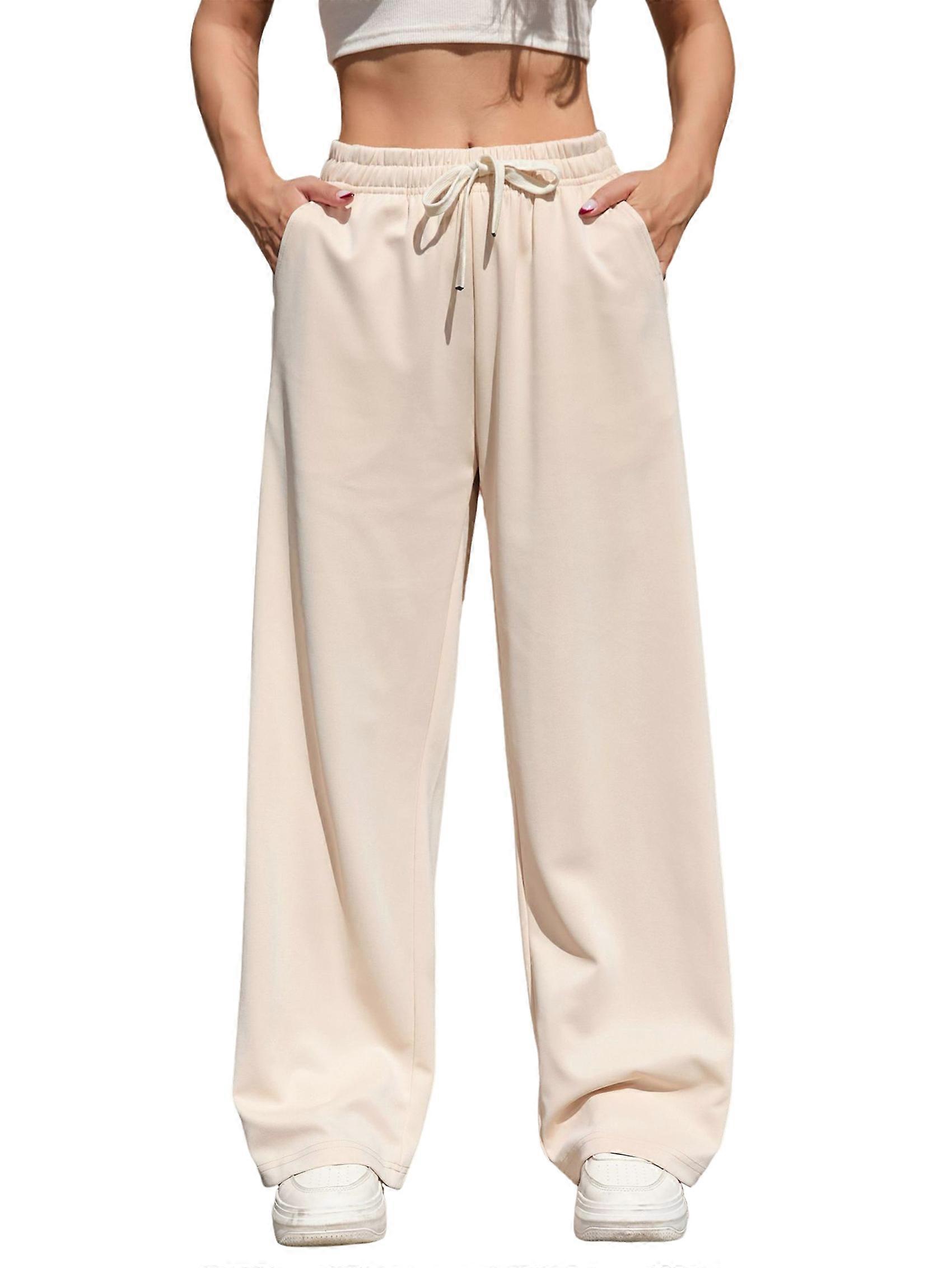 Women'S Wide Leg Pants Elastic Waisted Casual Sweatpants Adjustable Drawstring Trousers with Pockets Apricot Color S