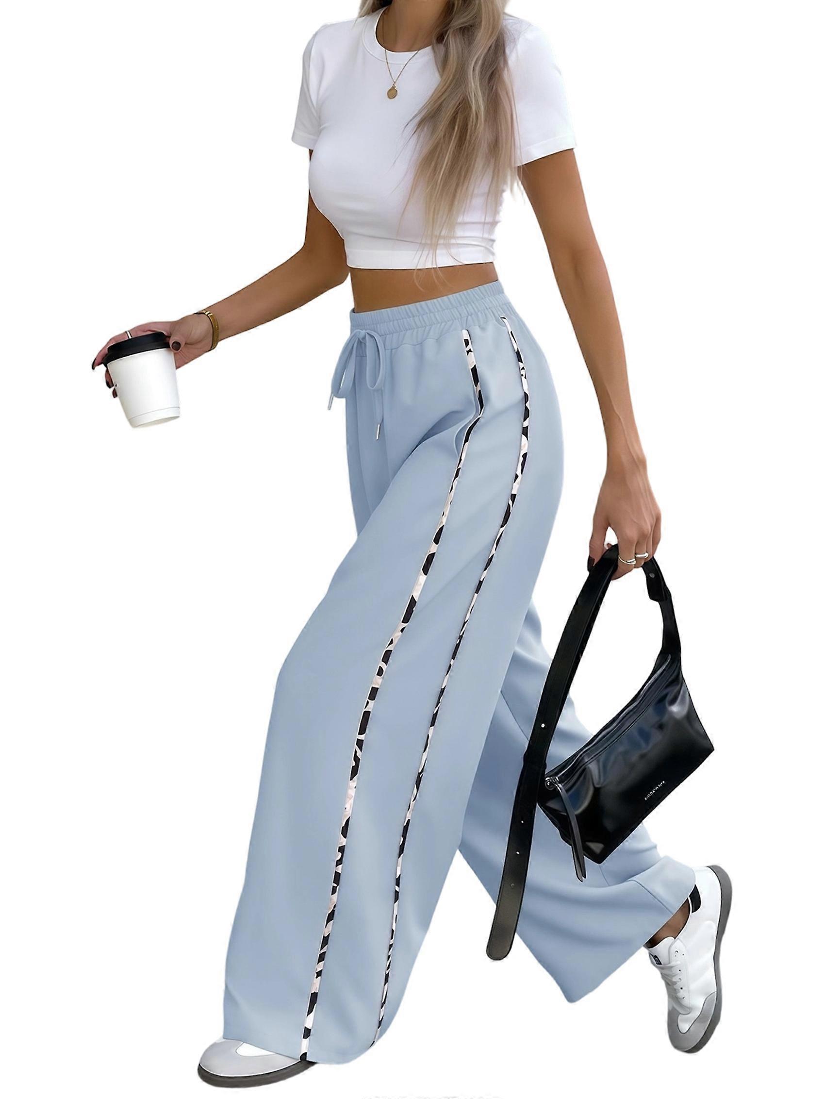 Female Wide Leg Sweatpants High Waisted Baggy Sweat Pants Active Striped Track Pants with Pockets Sky Blue S