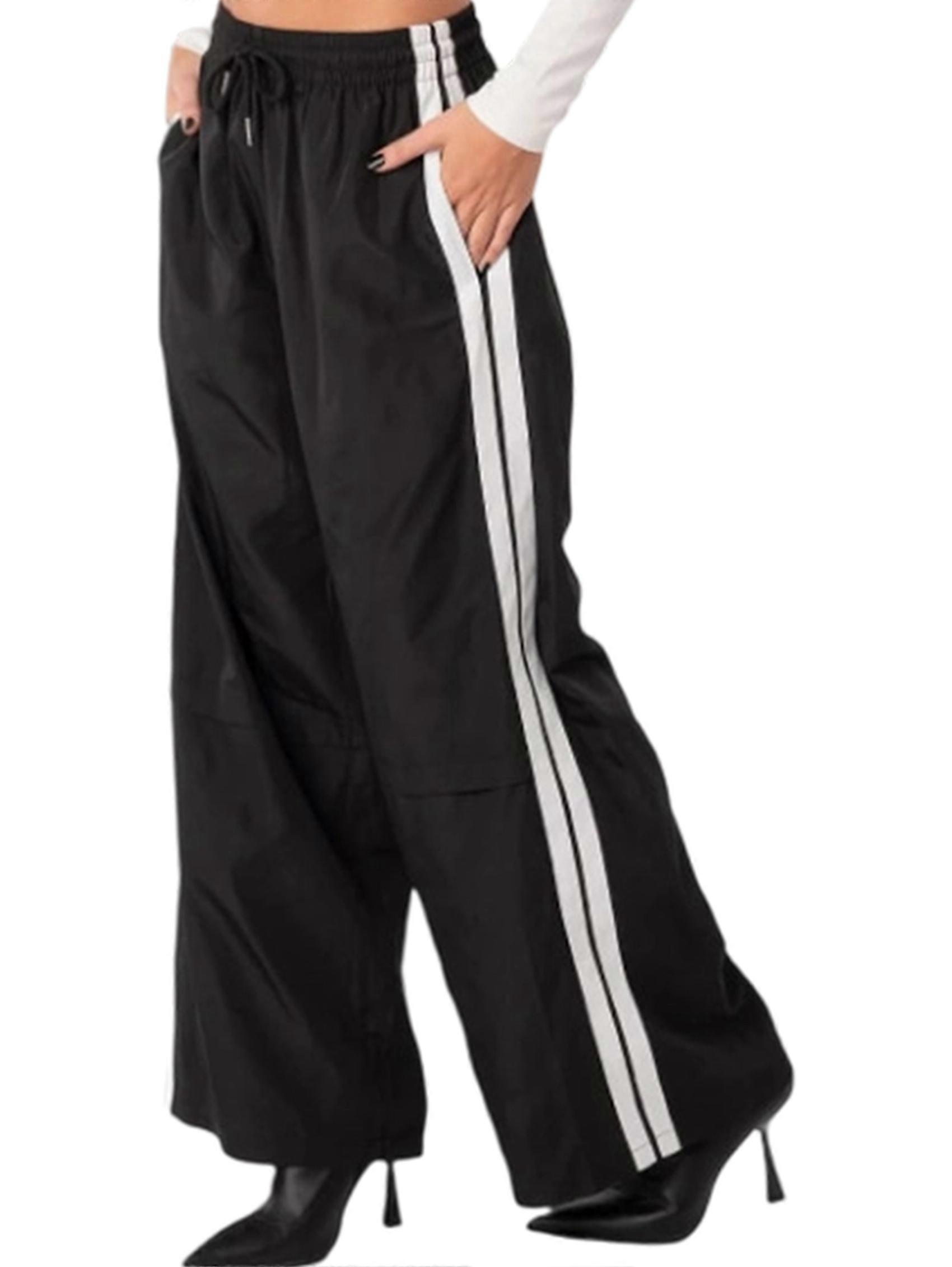 Female Track Pants Loose Straight Leg Jogging Sweatpants Warm-Up Sports Athletic Running Black XL