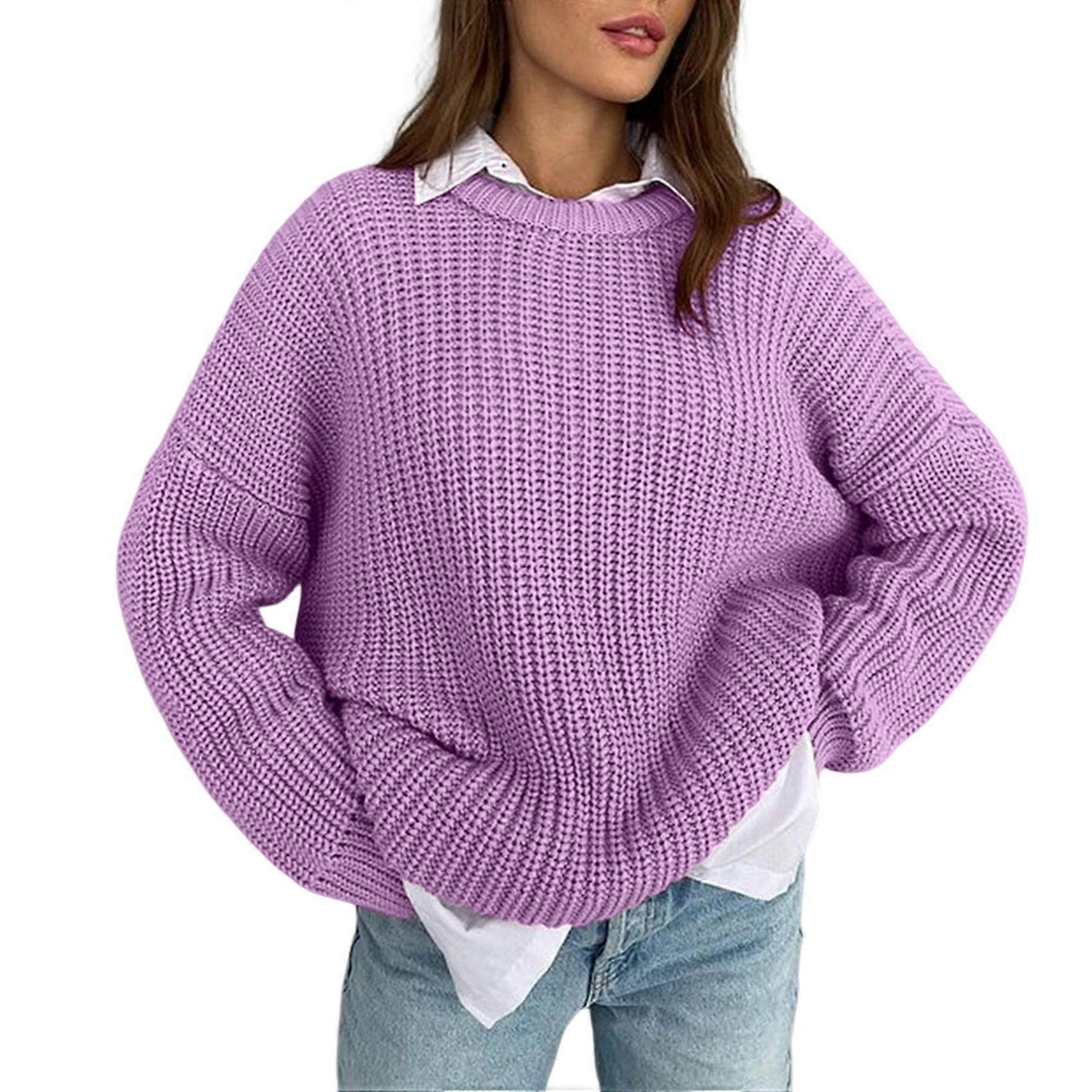 Womens Sweaters Fall Oversized Chunky Knitted Pullover Sweater Casual Long Sleeve Crewneck Cute Sweaters Purple L