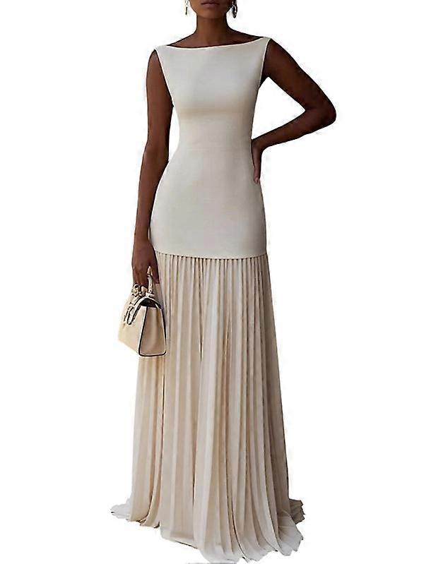 Pleated Bridesmaid Dresses for Women Boat Neck Formal Dresss Long A Line Wedding Guest Party Dress White L