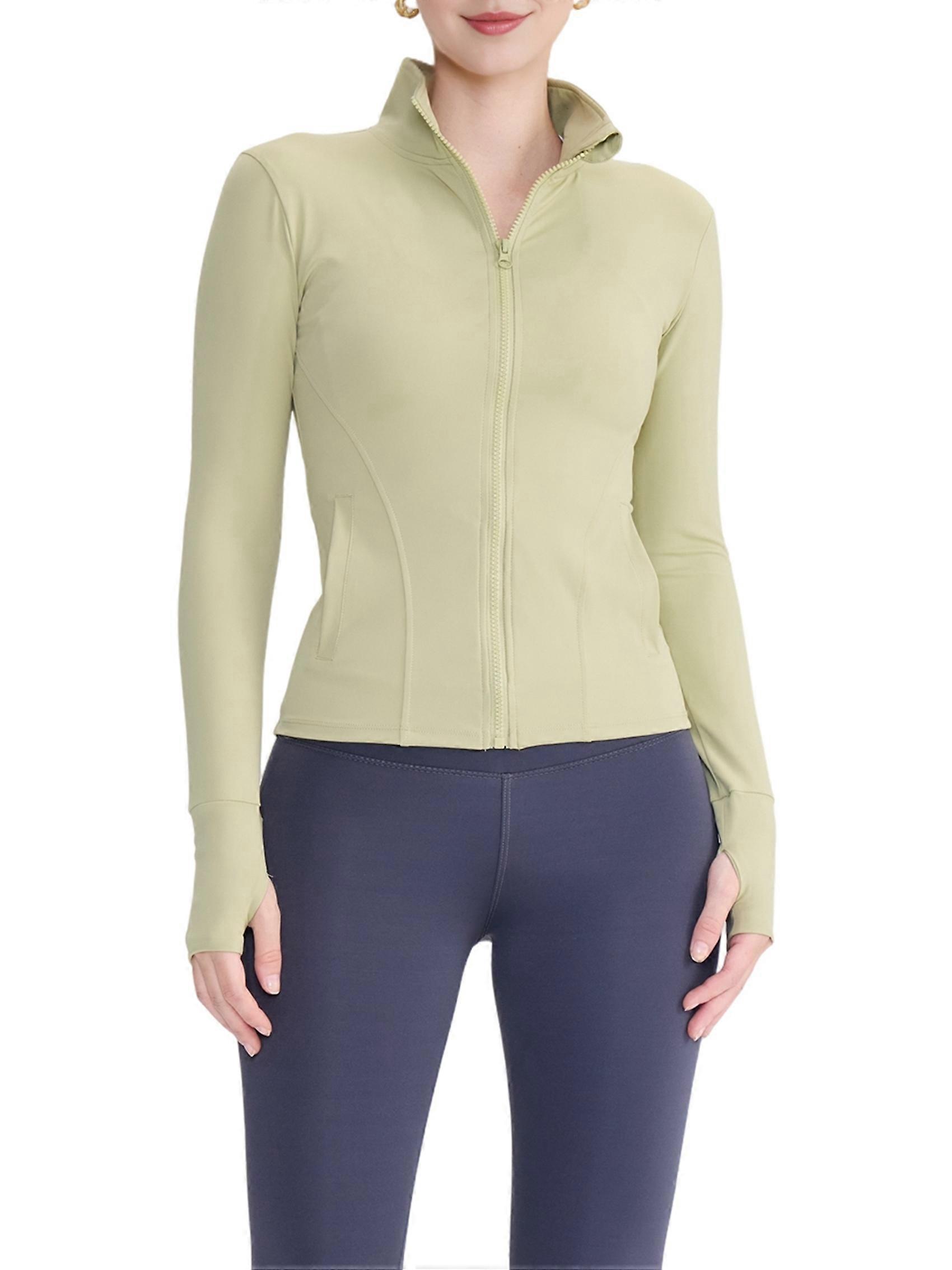 Female Full Zip Running Track Jacket Workout Slim Fit Yoga with Thumb Holes Leaf Green M