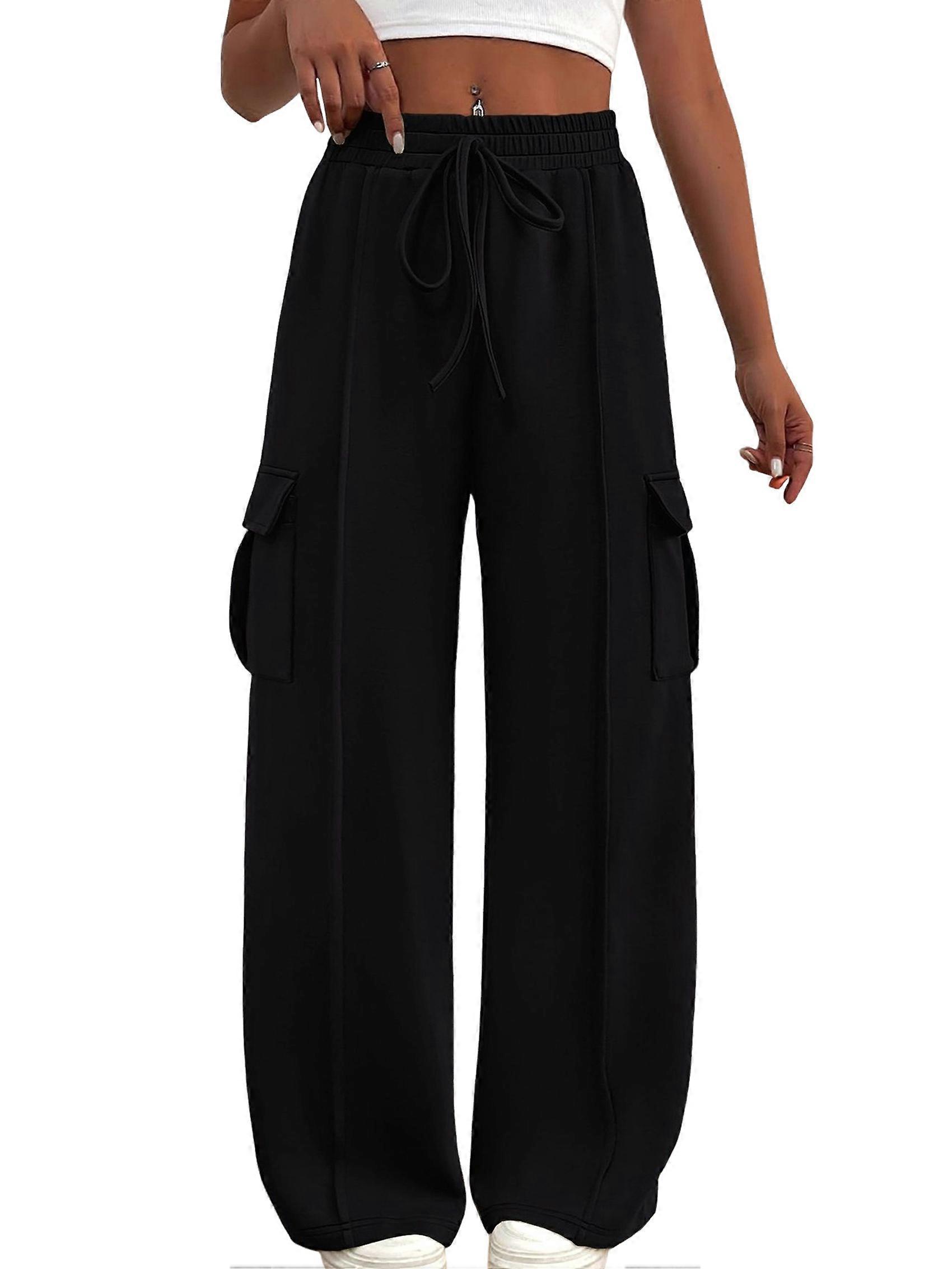 Women'S Plus Size Drawstring Running Sweatpants Loose Fit Wide Leg Pure Color Athletic Trousers Black XXXL