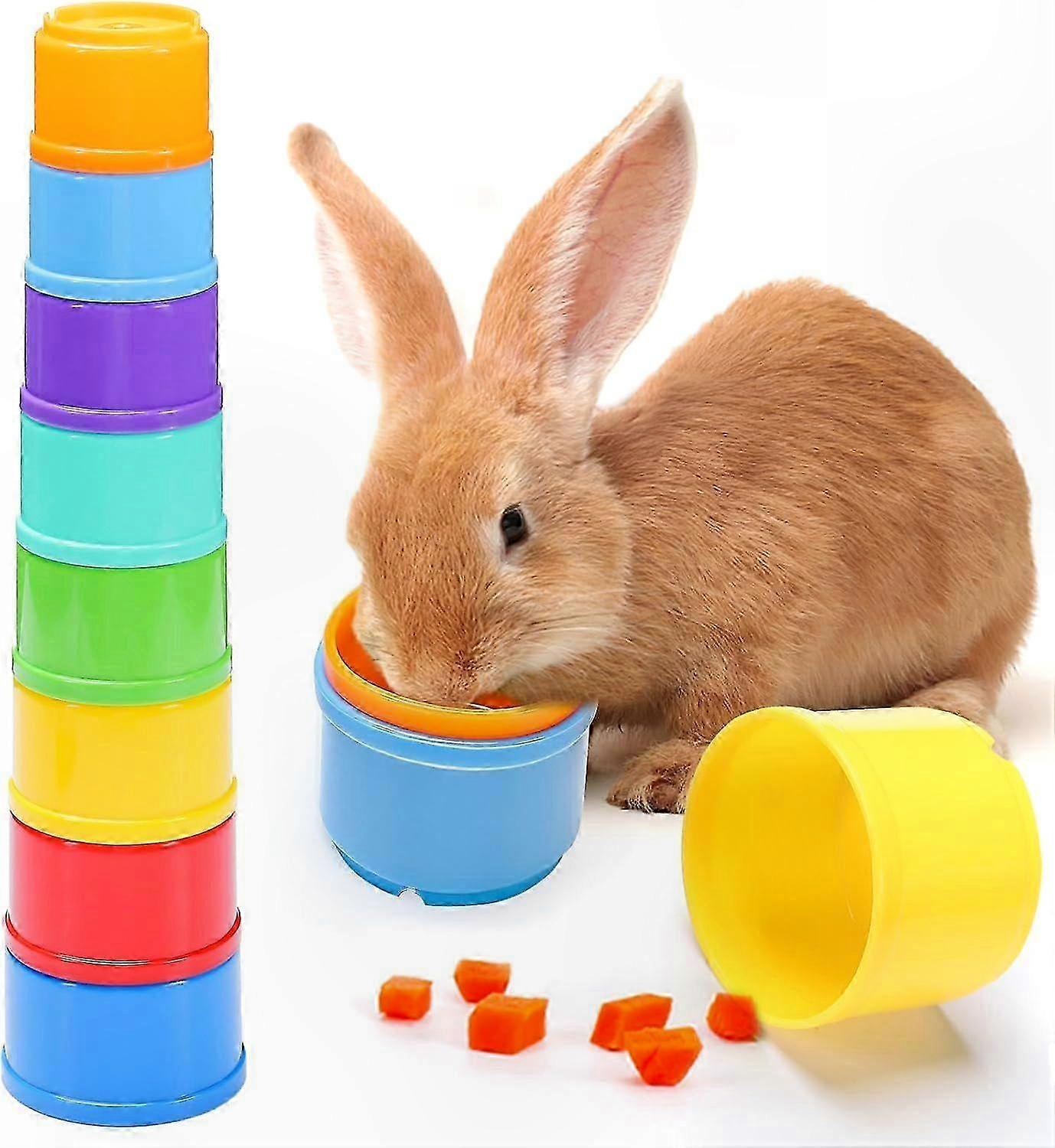 8 Pcs Multi-Colored Stacking Cups - Reusable Nesting Toys for Small Pets, Guinea Pig & Hamster Play Gifts of Various Sizes Safe Plastic