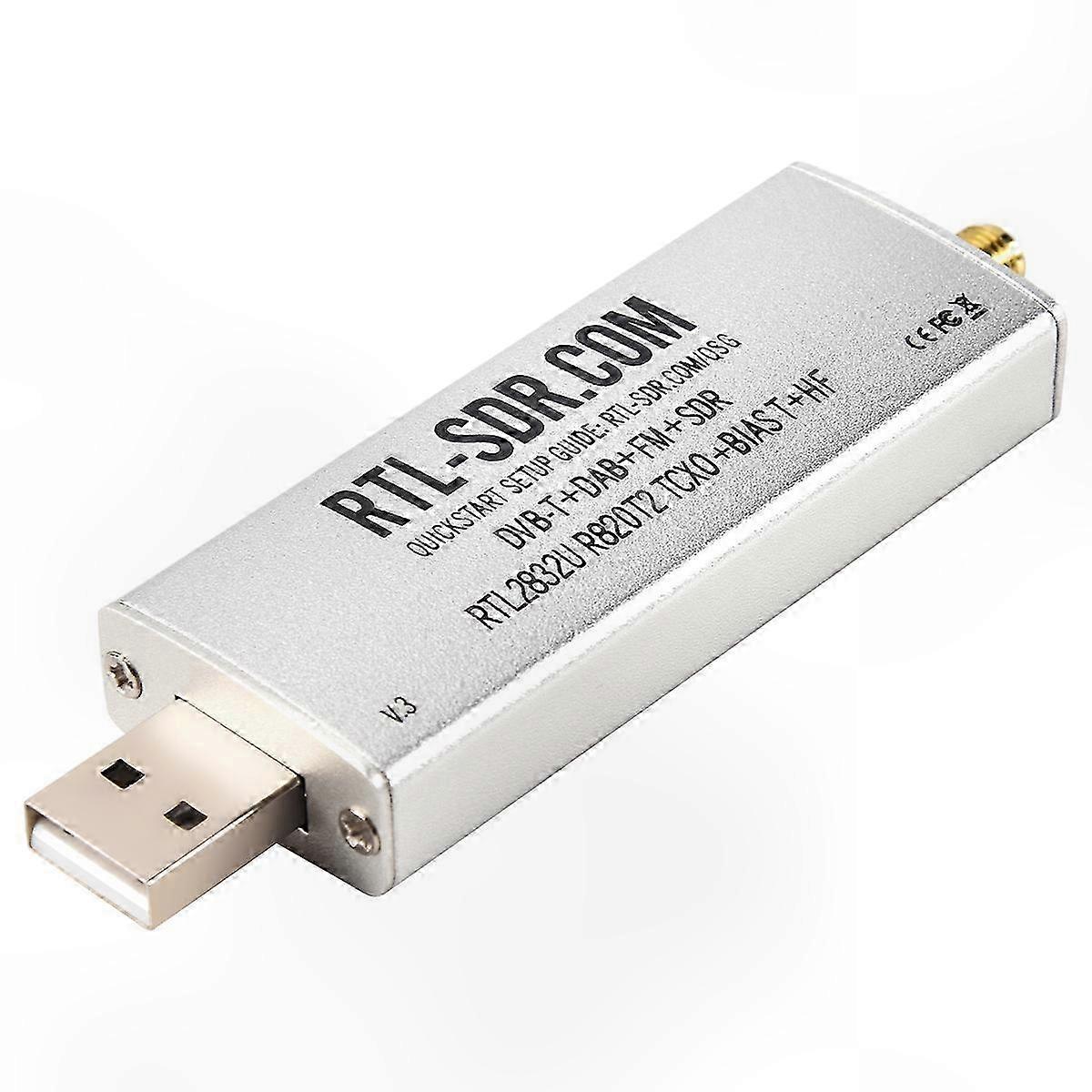 This is a software-defined radio receiver with RTL2832U ADC chip, R820T2 tuner, 1PPM TCXO, SMA F connector, and aluminum housing with passive cooling. Tunable from 500 kHz to 1.7 GHz with bandwidths up to 3.2 MHz (2.4 MHz stable). HF reception is supported in direct sampling mode. Compatible with computer-based SDR software including SDR#, HDSDR, SDR-Radio, GQRX, and SDR Touch on Android. Works with Windows, macOS, Linux, Android, and Raspberry Pi. Suitable for applications such as general radio scanning, air traffic control, public safety, ADS-B aircraft tracking, ACARS, trunked radio, P25/MotoTRBO digital voice, POCSAG, weather balloon tracking, APRS, NOAA APT/Meteor M2 weather satellite reception, radio astronomy, and DAB. Can also serve as a low-cost panadapter with amateur radio transceivers. Includes a versatile dipole antenna kit suitable for beginners. Short antennas are optimized for ADS-B; longer antennas perform well at lower frequencies. In V-dipole configuration, the antenna supports 137 MHz weather satellites and ISS reception. Vertical configuration is suitable for ground-based signals. Includes two mounting brackets and 3 meters of RG174 cable for outdoor installation. This model features improvements over standard versions, including an enhanced R820T2 tuner, 1PPM TCXO, higher-grade components, a redesigned low-noise PCB, improved thermal management, additional ESD protection, and SMA F connectors. Also includes a software-activatable bias tee for powering external LNAs or active antennas. Color: Silver Material: Metal Package Contents: 1 x RTL-SDR radio receiver Note: The actual product color may vary slightly due to lighting conditions and display settings. Dimensional tolerance: ±1–3 cm.
