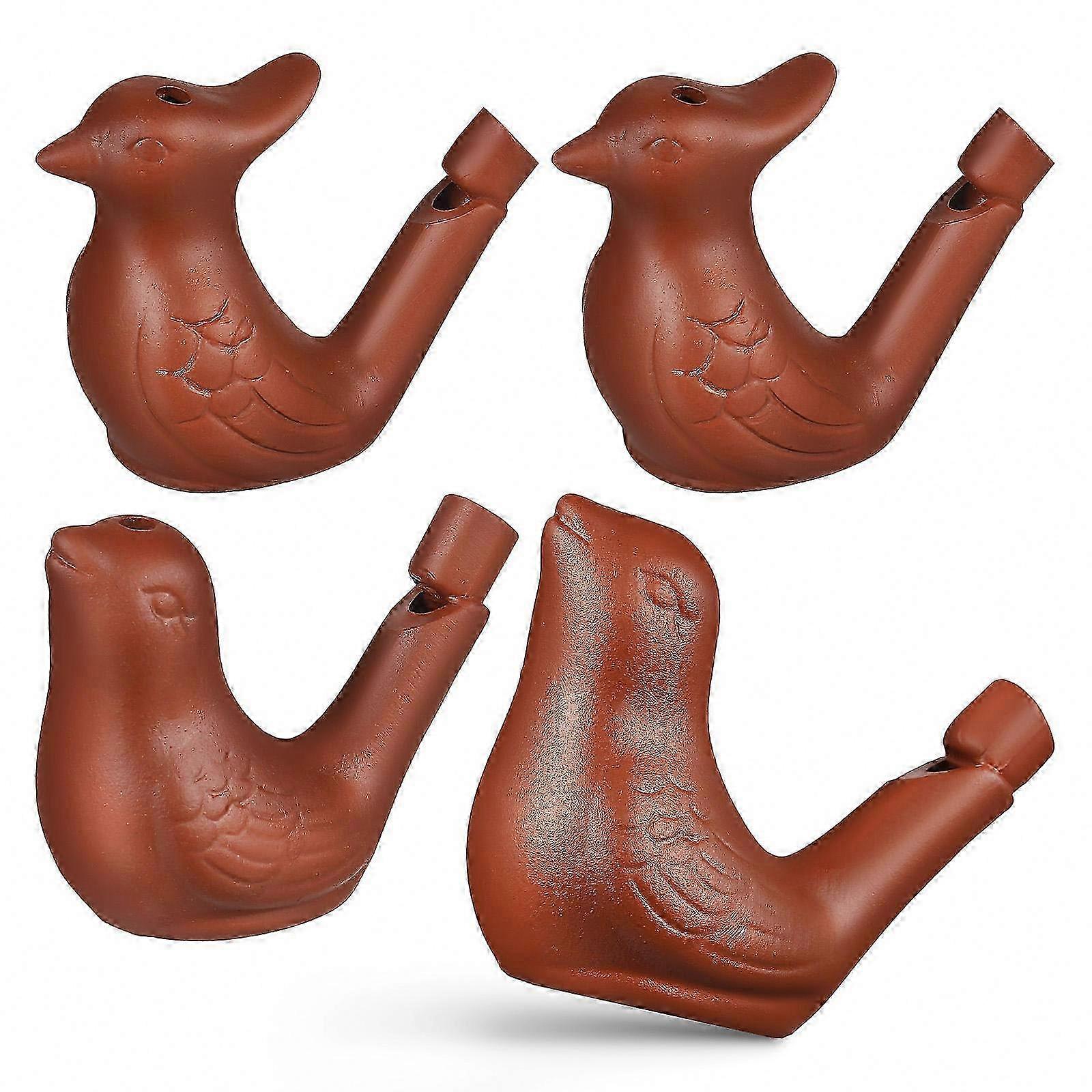 This pottery bird whistle is crafted in the shape of a bird and features a lanyard for easy carrying. When filled with water and blown, it produces a sound resembling a natural bird call. Ideal for bird watchers and nature enthusiasts, this whistle offers an engaging way to connect with wildlife. Features: - Color: Coffee - Material: Pottery - Size: 7.00 × 5.50 × 3.30 cm / 2.75 × 2.16 × 1.30 in - Craftsmanship: Handcrafted from pottery, ensuring durability and aesthetic appeal. - Sound: Carefully tuned design produces a clear, melodious bird-like sound. - Portability: Compact and lightweight for easy transport. - Versatility: Can be used as both a functional whistle and a decorative item. - Gift-ready: A unique and thoughtful gift for bird lovers, music enthusiasts, and admirers of handmade pottery. Package includes: 4 whistles