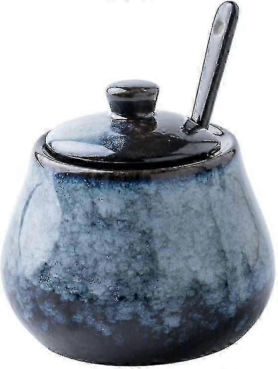 Antique Ceramic Sugar Bowl Salt Bowl With Lid And Spoon 8oz Seasoning (grey Blue) Seasoning Can szsh134