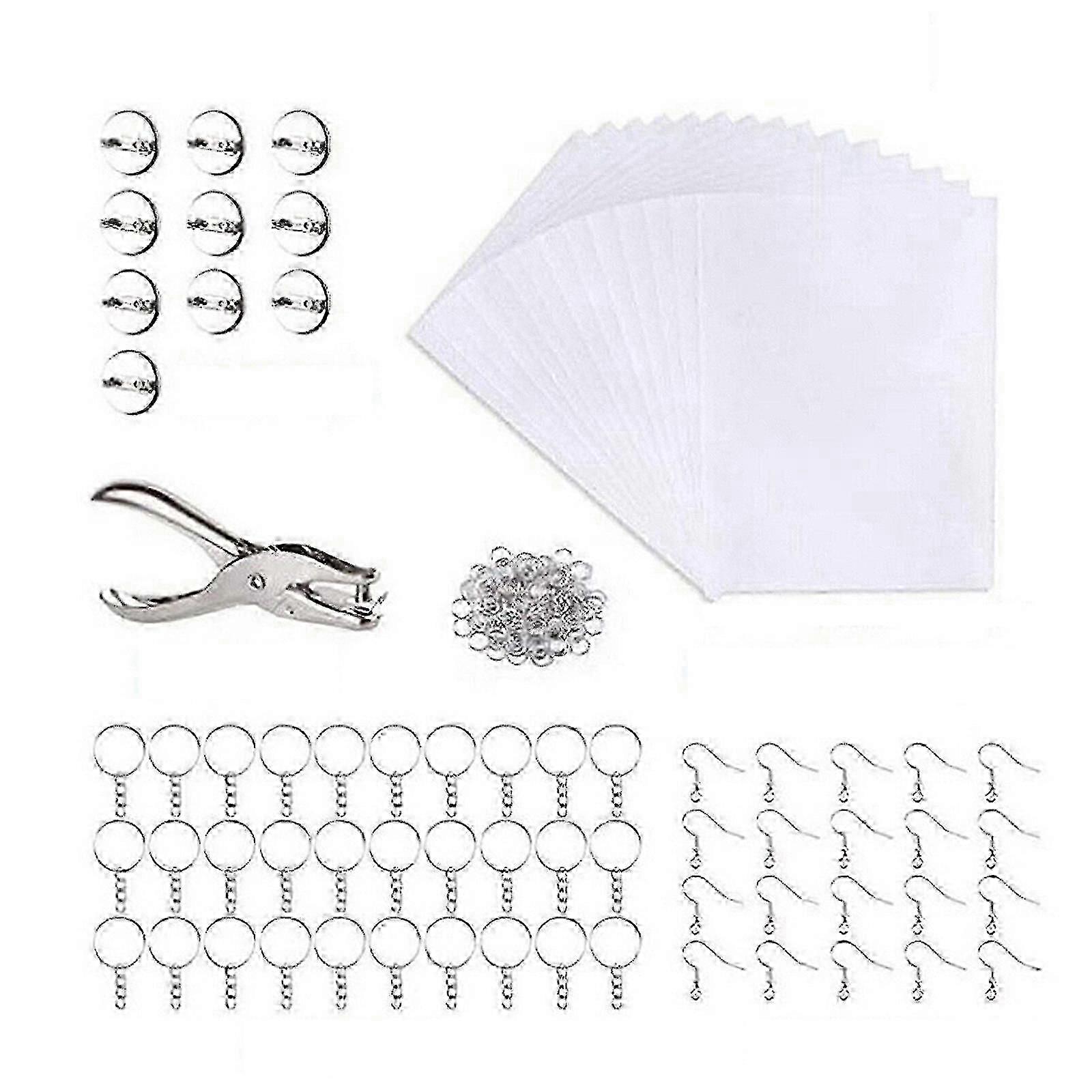 Usage Tips:Featrures1. Heat Shrink Plastic Set include: Including 25 x Shrink Film Sheet, 10 x keychains, 10 x butterfly clutches, 10 x cell phone straps lobster clasps, 5 x bead chains, 20 x ear hooks, 100 x open jump rings, 1 x Hole Punch. This is a very interesting heat Shrink plastic keychain making set.2. Shrink Plastic: 25PCS art paper make of PVC, Approx. 7.9 x 5.7 inch / 20 x 14.5 cm, 0.3 mm thick. Shrinks to 20% of its size after heating. 3. Just draw and color your favorite art, cut it out with scissors and it will shrink in your oven4. Endless creative uses of DIY pendants, earrings, keychains, jewelry, buttons, gift tags, zipper pulls, bookmarks and ornaments Specifications:Shrink plastic: Approx. 7.9 x 5.7 inch / 20 x 14.5 cm, 0.3 mm thickKey chains: 1.5 inch / 3.8 cm(length), 0.8 inch / 2 cm (diameter)Ball chains: 4 inch / 10 cm (length)Ear hooks material: AlloyHole Punch material: AlloyPackage includes:20 * Shrink Film Sheet, 30 * Keychains, 10 * Brooches, 20 x Ear Hooks, 100 * open jump rings, 1 * Hole Punch