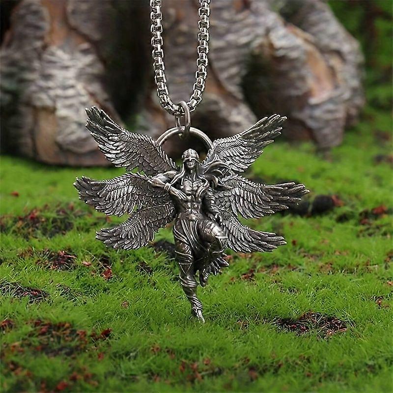 1pc Stylish Mythical Guardian Angel Warrior Pendant Necklace - Dark Grey, with Chain Detail - Ideal for Casual Parties & Daily Wear - Perfect Gift for