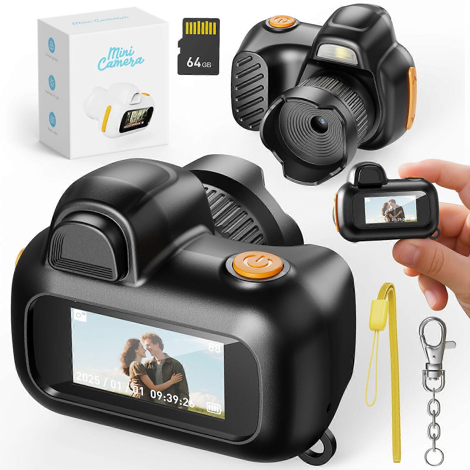 Camera, 1080P HD Digital Camera with 64GB SD Card | 2.44cm LCD Screen, 4X Zoom & Selfie Mode, 4 Retro Filters, Auto Night Flash, Portable Keychain Cam