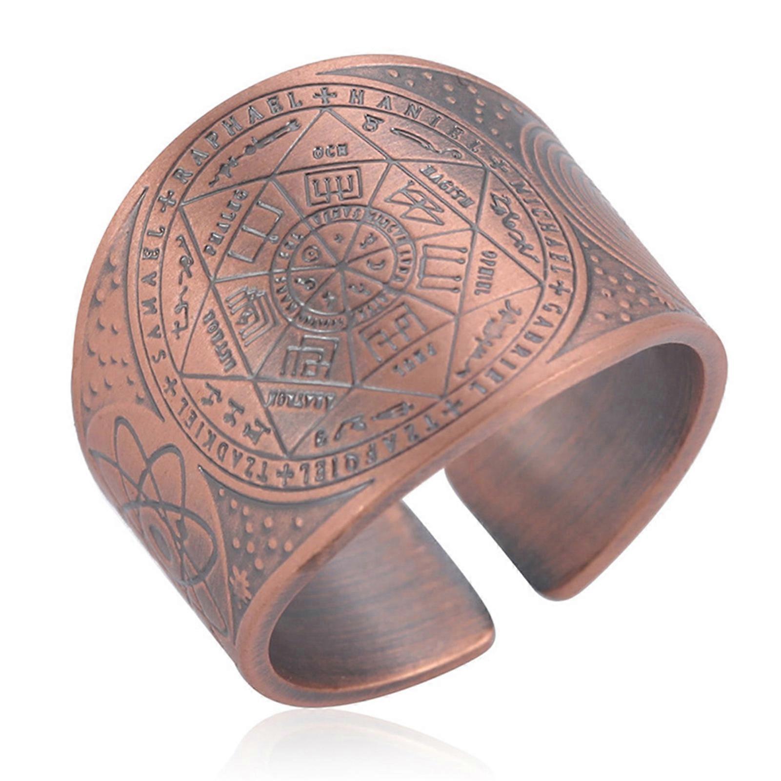 Adjustable Vintage Aztec Calendar Ring, Wide Brass Cuff Statement Ring, Unisex Tribal Jewelry Gift