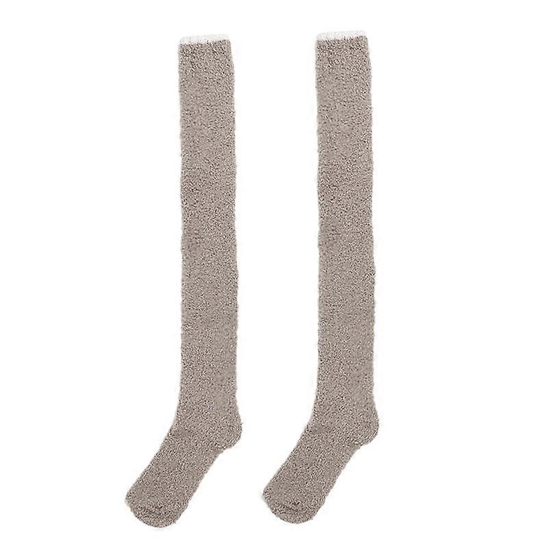 Winter Warm Coral Fleece Over-knee High Socks For Women Plush Home Sleep Floor Long Socking Solid Soft Thigh High Fun Sock