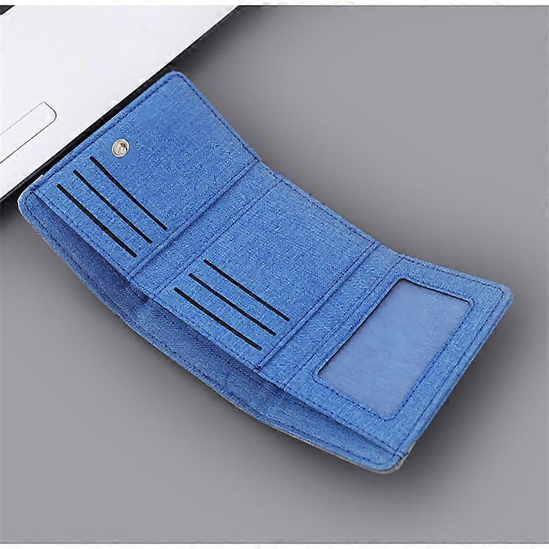 Canvas Wallet Men's Multi Functional Short Student Small Money Clip Card Bag Minimalist Contrast Denim Three Fold Wallet