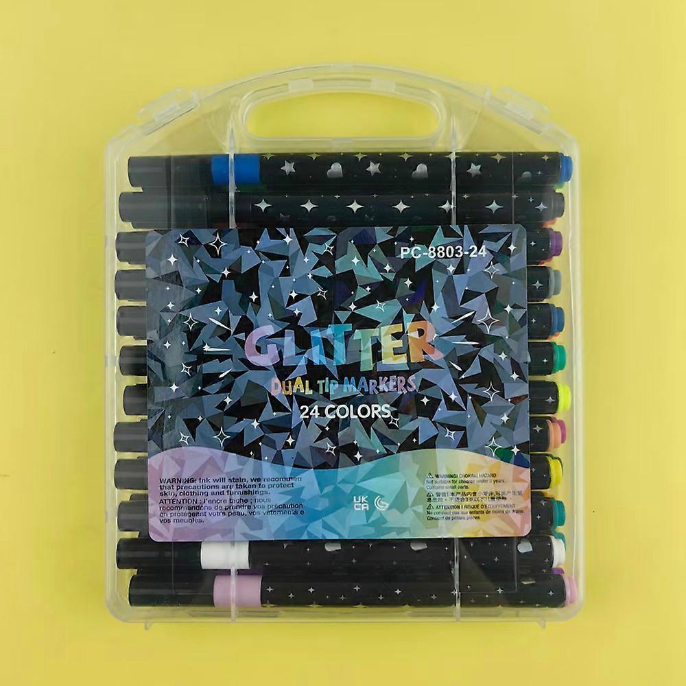【24/12 Colors Glitter Marker Pens】Box/Glitter Soft-Tip Acrylic Marker Pens for Students, Art-Specific, Non-Transparent, Layerable, Flashy Wa