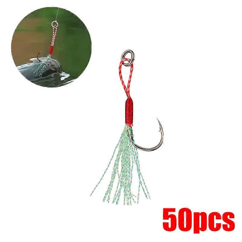 10-60pcs Slow Jigging Fishing Cast Jigs Assist Hook Barbed Single Jig Hooks Thread Feather Pesca High Carbon Steel Fishing Lure
