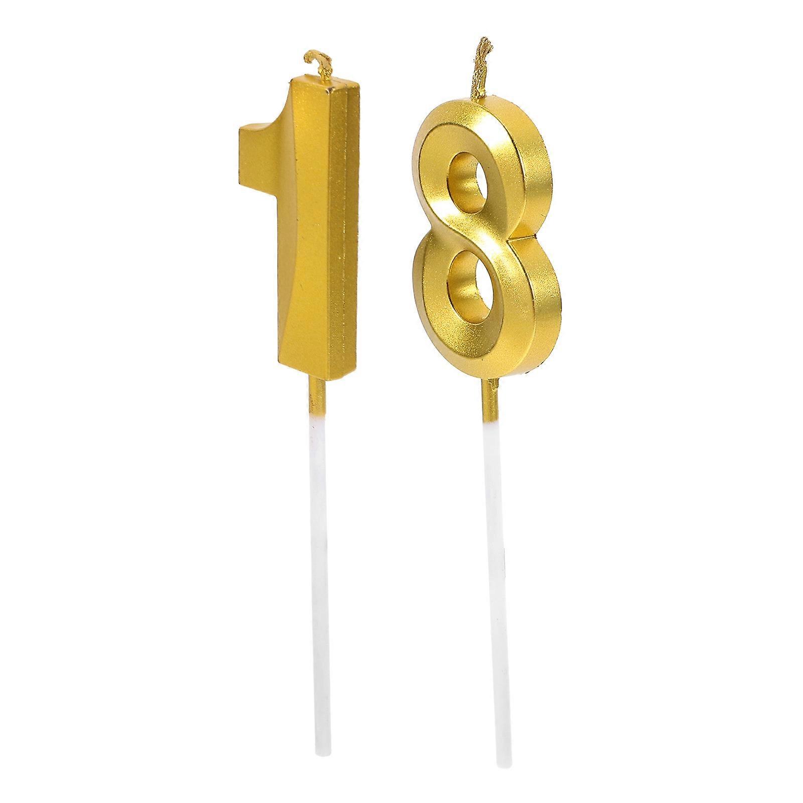 Golden Number Candle Cake Decoration for Birthday Use 2Pcs Set