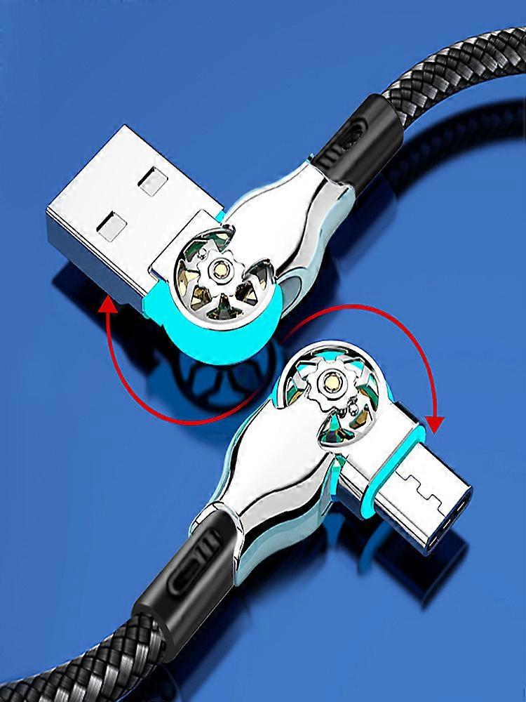 180 Degree Fast Charging Cable Elbow Rotation USB A to Type C Cable with Light Zinc Alloy Braided Data Cable USB Micro Charger
