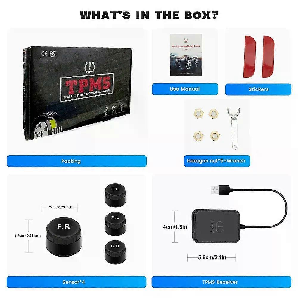 USB Android TPMS Tire Pressure Monitoring System Display Alarm System For Navigation Player Temperature Warning Sensors