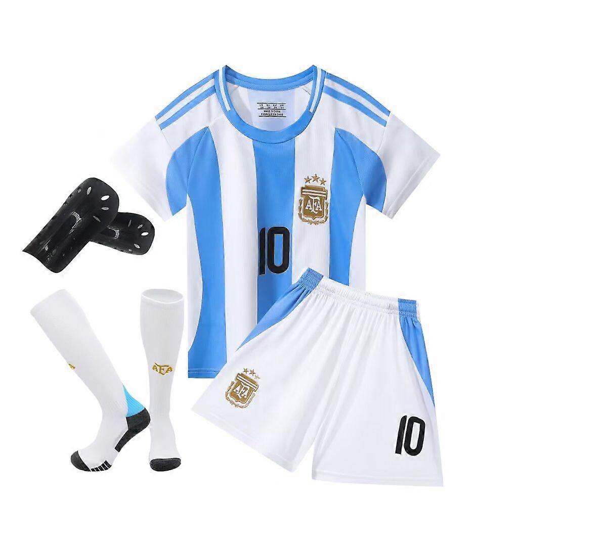 Argentina Home Version No. 10 Kid's Soccer Jersey Set, Teen Size, Includes Soccer Socks and Shin Guards