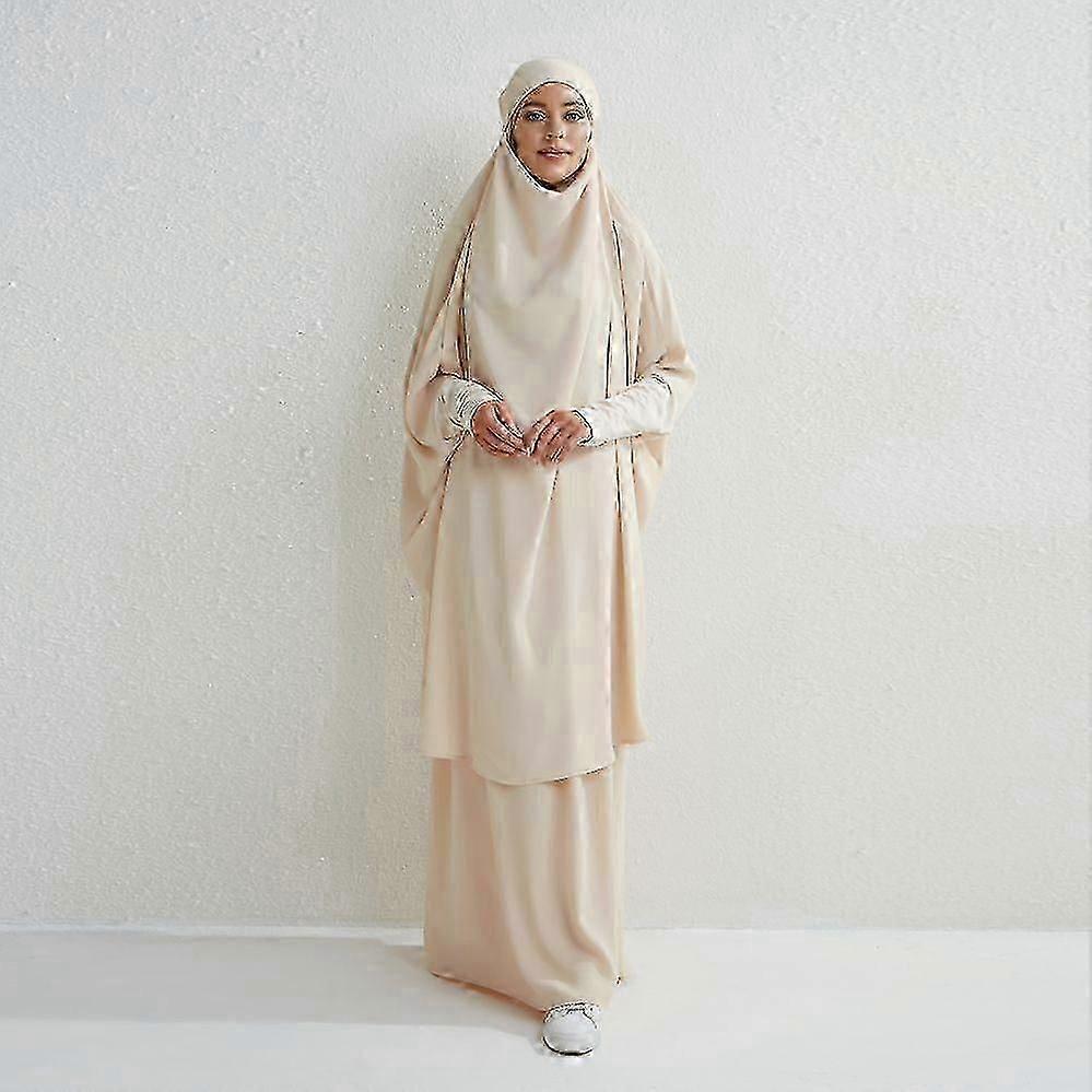 Muslim Sets Two Pieces Prayer Clothing Long Hooded Smocking Sleeve Shirts Hijab Loose Maxi Skirts Elastic Waist Women Abaya Sets3