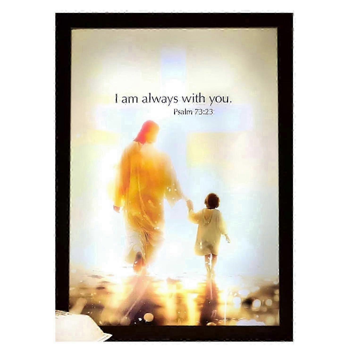 Jesus Lamppicture Frame Light, 4D LED Painting Inspiring Jesus Night Light, Christian Decorative Present.