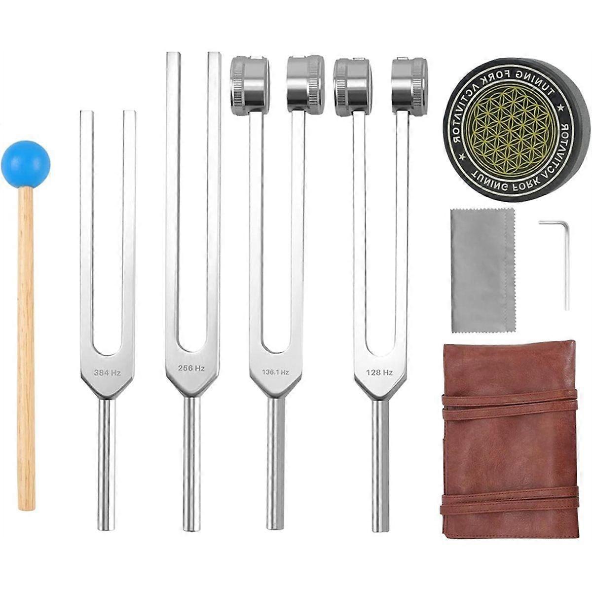 Tuning Forks for Healing Set, 128Hz, 136.1Hz, 256Hz, 384Hz & Activator for Healing Chakra Set Sound Healing Therapy