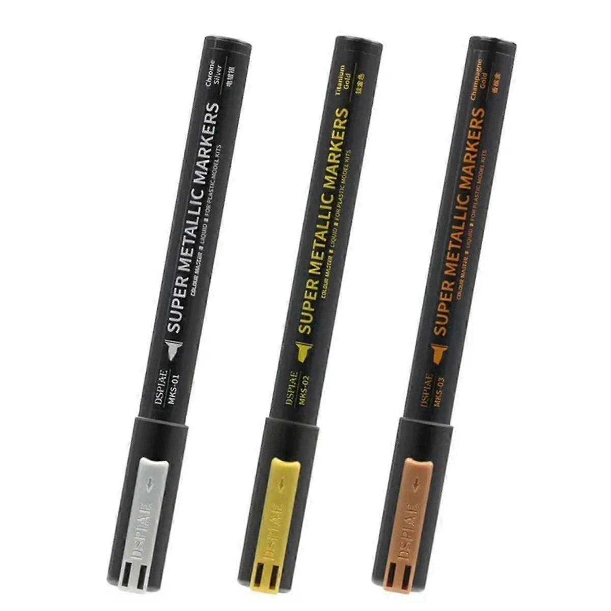 MKS Super Metallic Color Chrome Silver Titanium Gold Champagne Gold Color Marker Pens for Model Painting 3PCS
