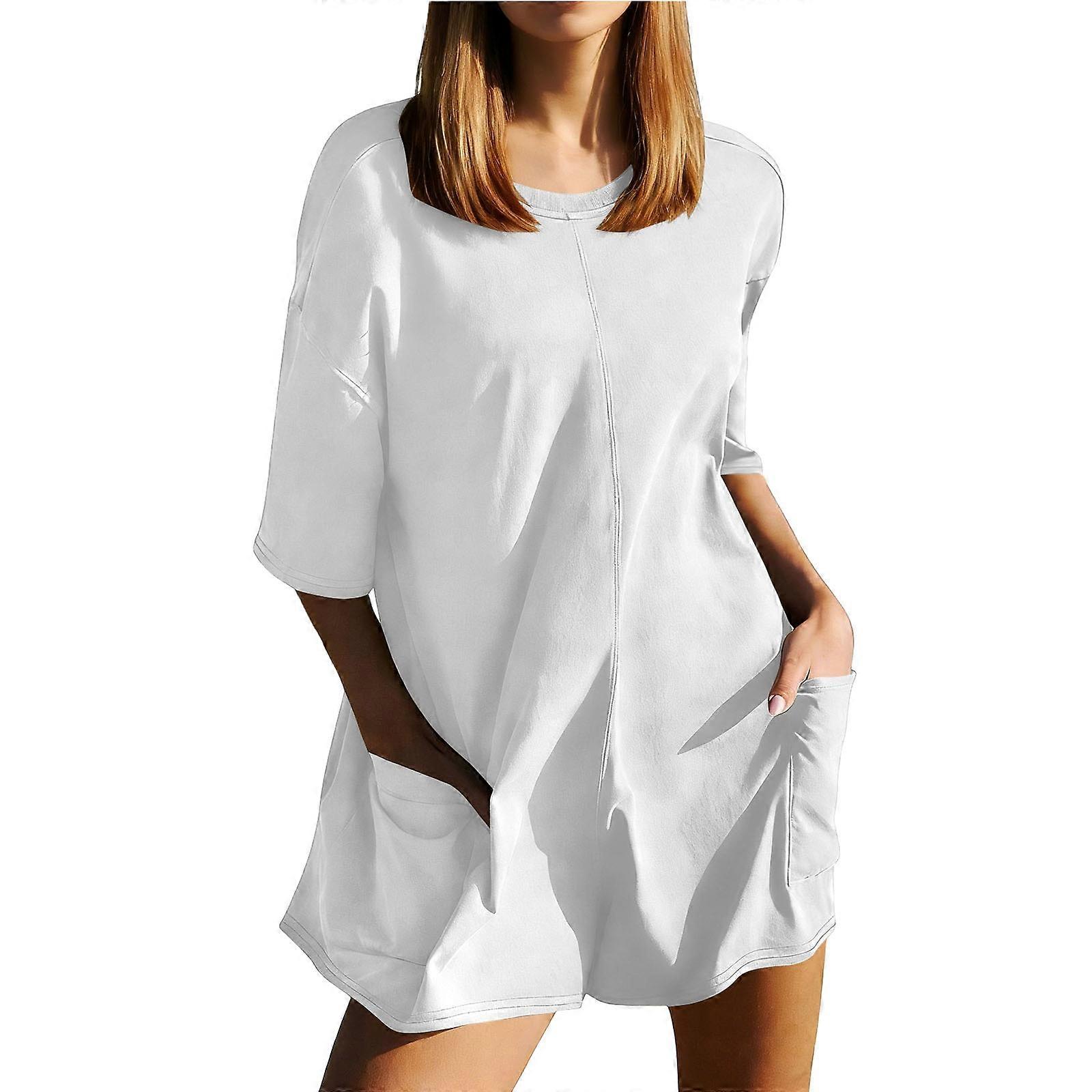 Women Casual Piece Shorts Tshirt Pants Jumpsuit Beach Vacation Clothes White XS