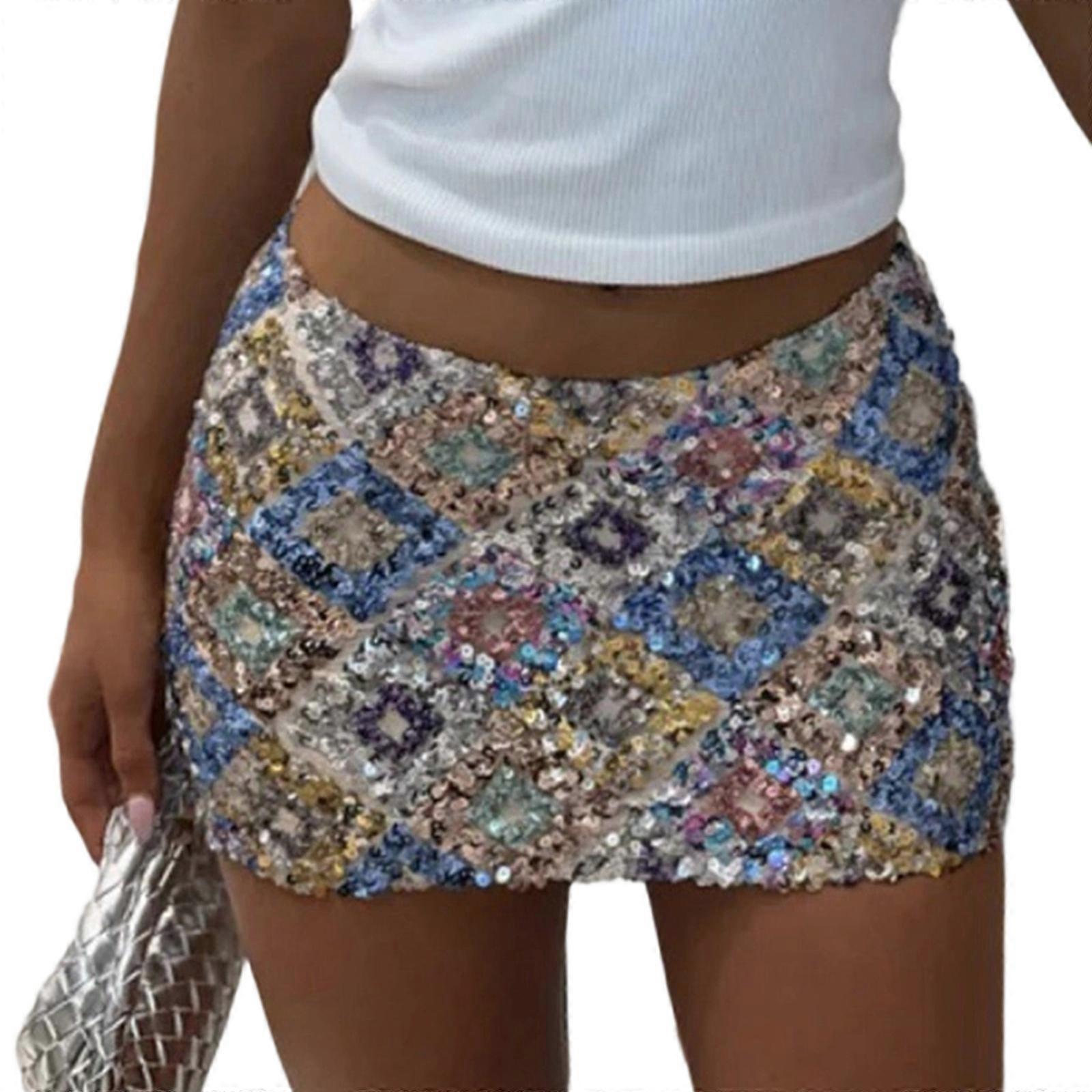 Sequined Women's Skirt For Dance And Movement During Celebrations Stretch Polyester Fabric Ensuring Movement Silver XL