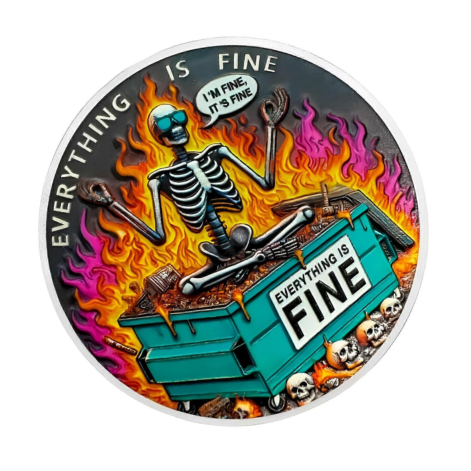 Metal Skull Dumpster Fire Challenge Coin to Encourage Team Spirit and Fire Prevention Awareness Funny Desk Accessories Multicolor