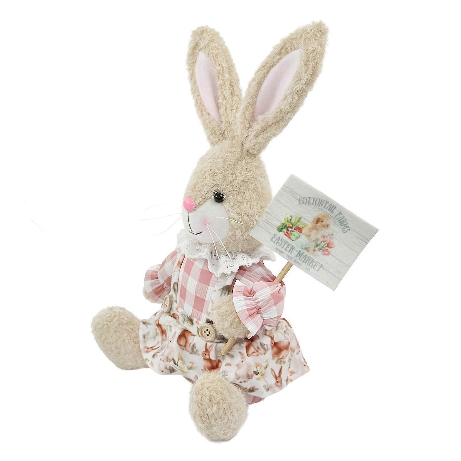 Rabbit Figurine Creating Warm Family Ambiances Pastoral Design Easter Plush Decorative Sitting Rabbit Statue Plush Toy Multicolor